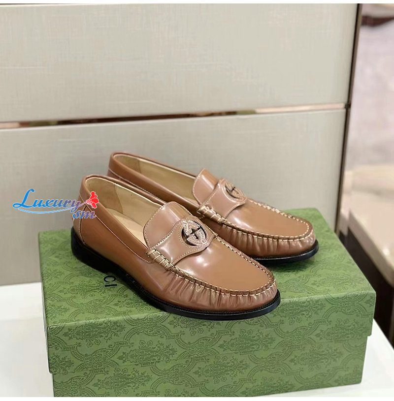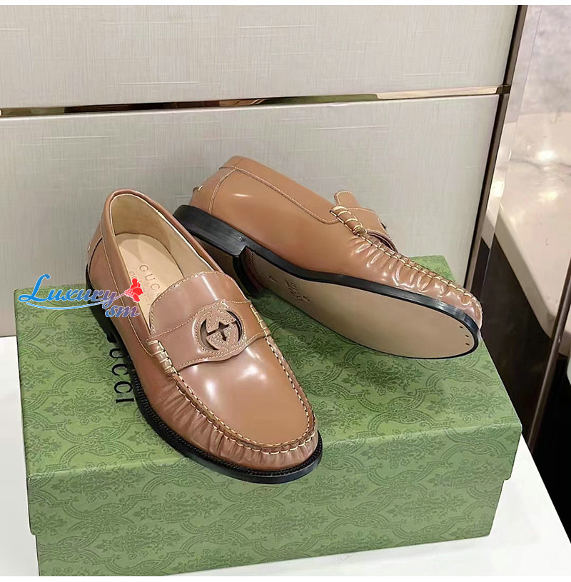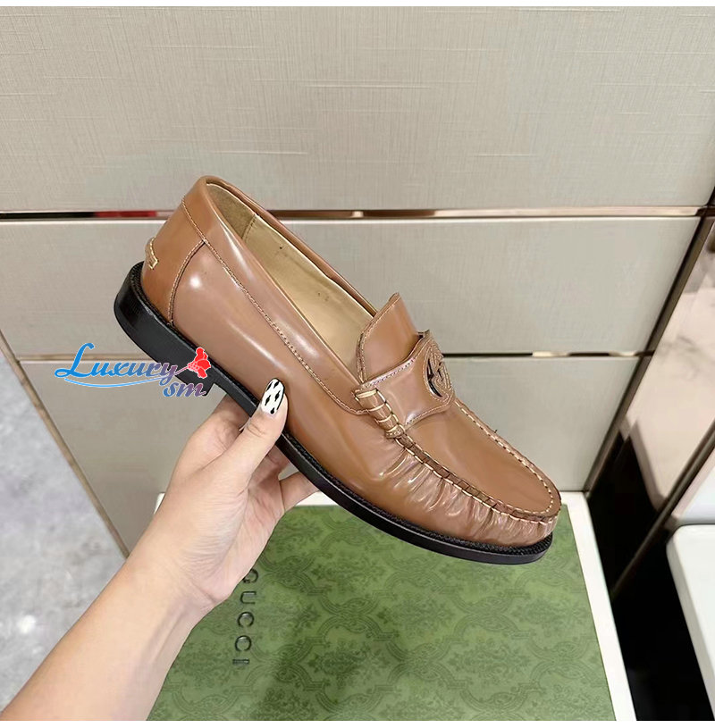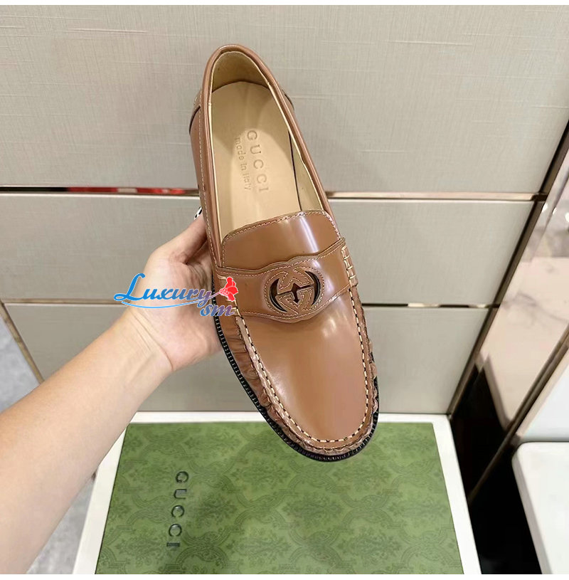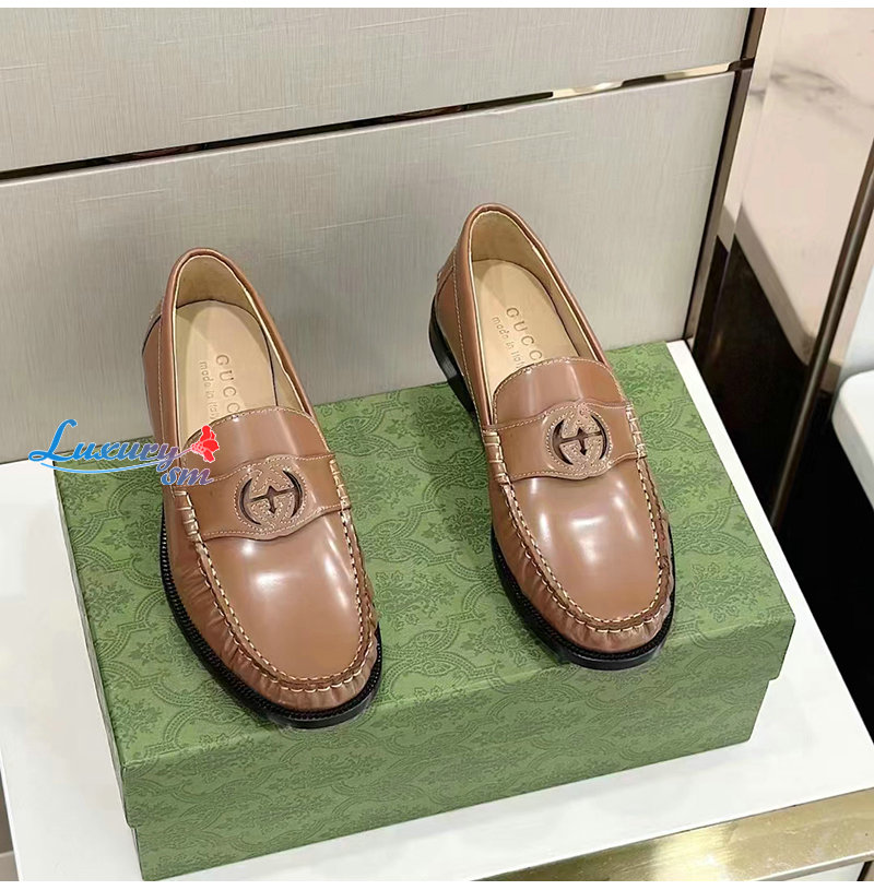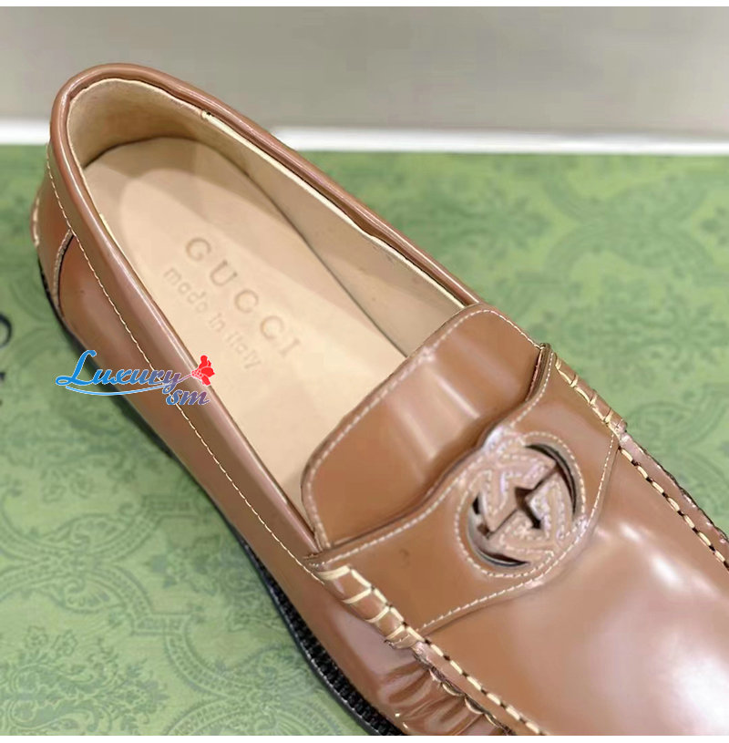 GUCCI-738470 2535 구찌 브라운 가죽 인터로킹 G 로퍼 남성용