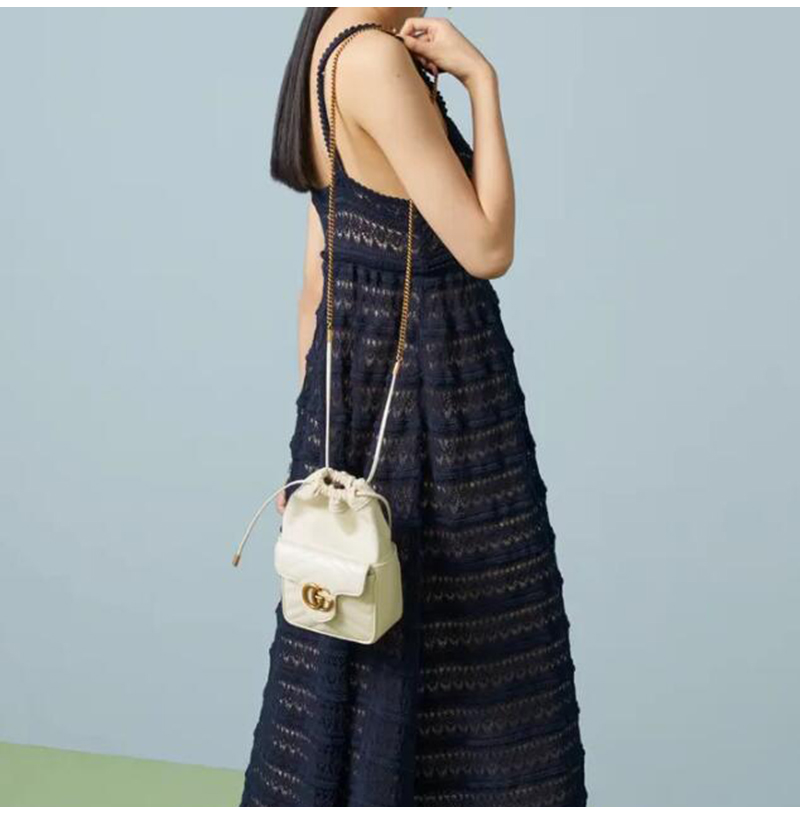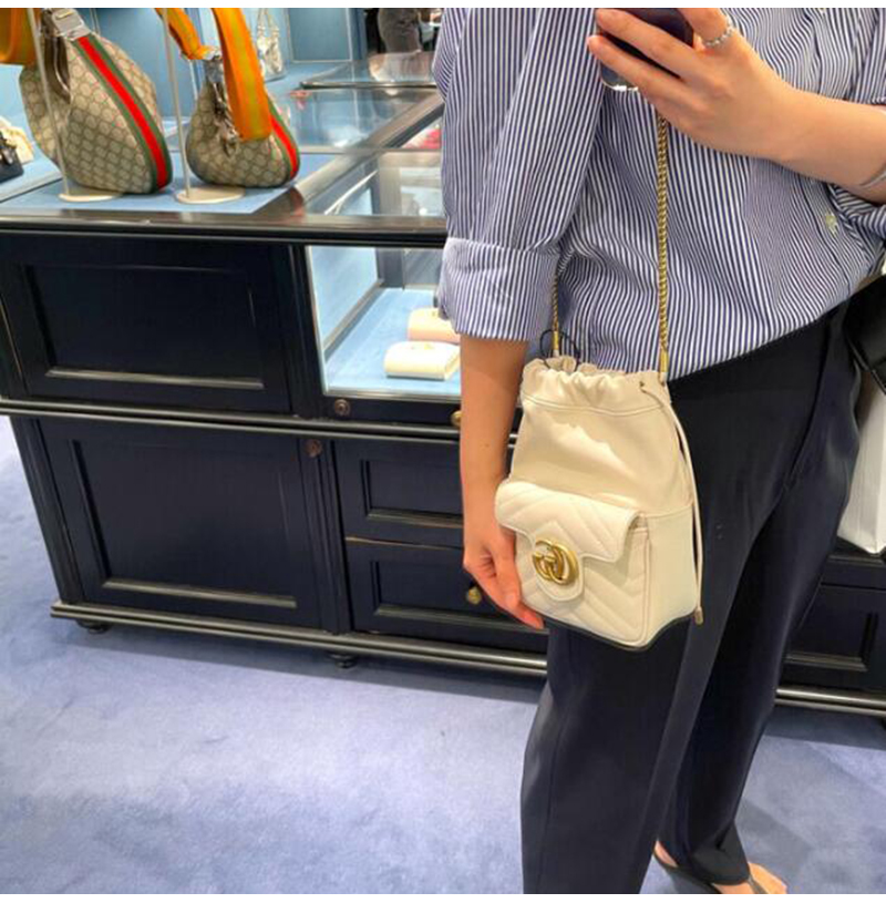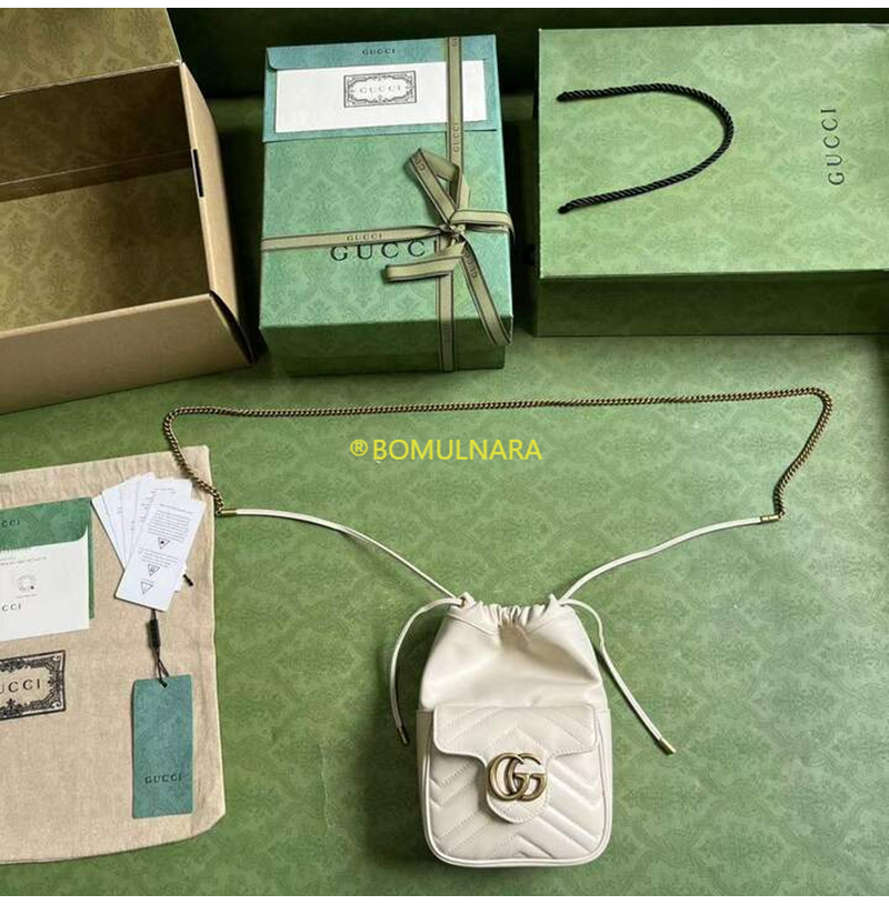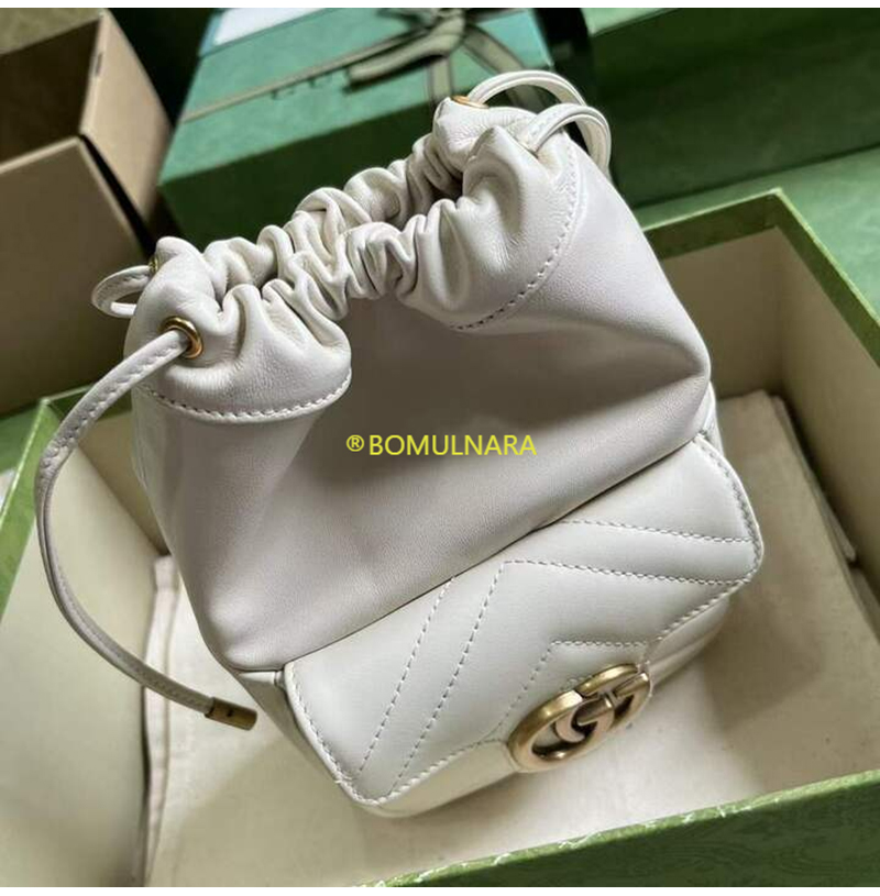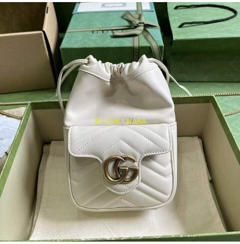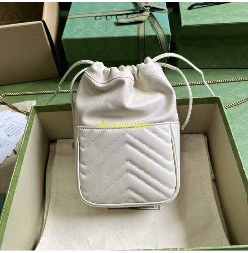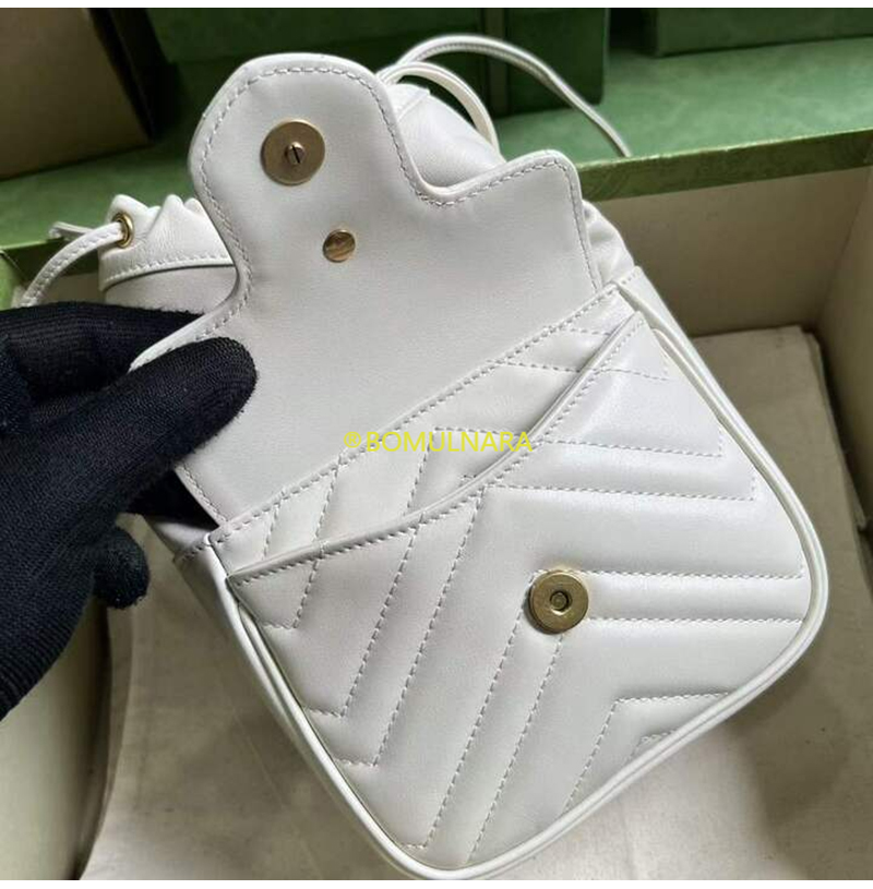[스페셜오더]GUCCI-746433 9022 구찌 화이트 마틀라세 쉐브론 가죽 GG 마몽 미니 버킷백