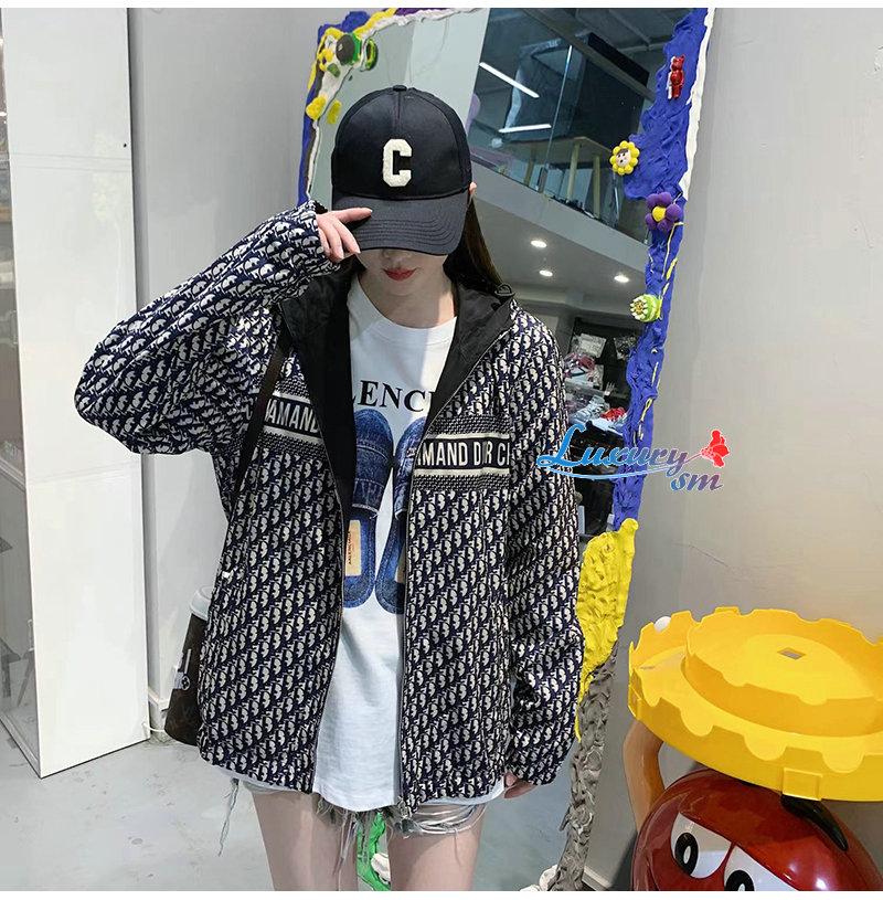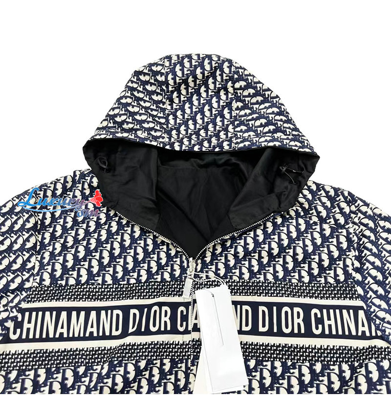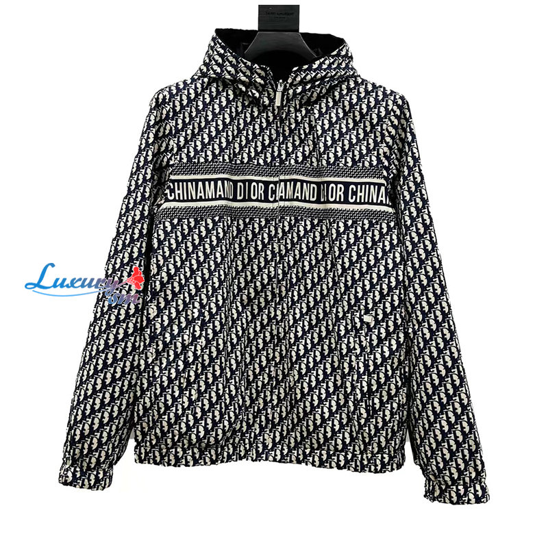DIOR-08215 디올 블루/블랙 Dior Oblique 양면 바람막이 후드 재킷 남여공용