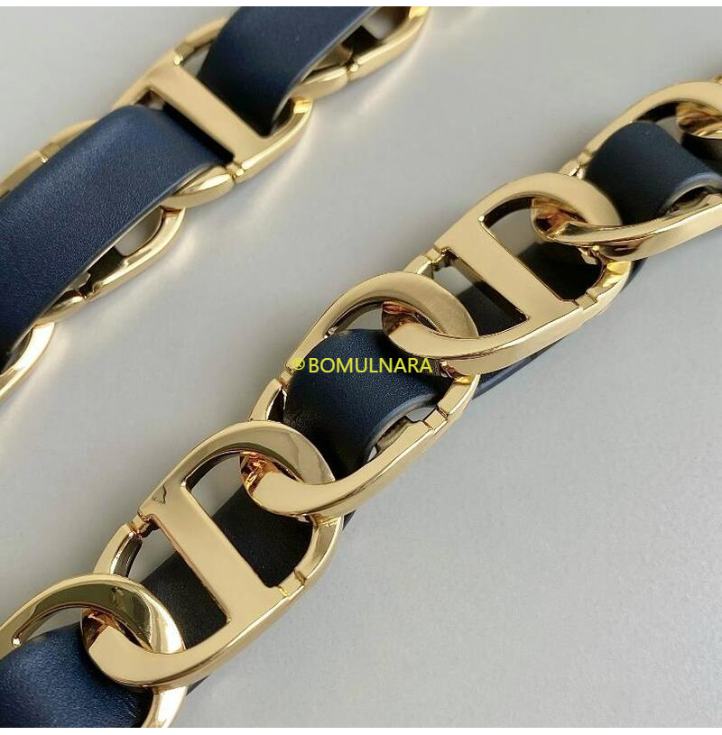 블루 Oblique 자카드 / 카프스킨 가죽 트리밍