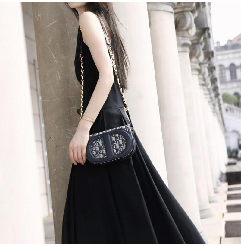 [스페셜오더]DIOR-M9280 디올 블랙 CD 엠보싱 복스 카프스킨 CD 시그니처 미디엄 스트랩 백 21CM
