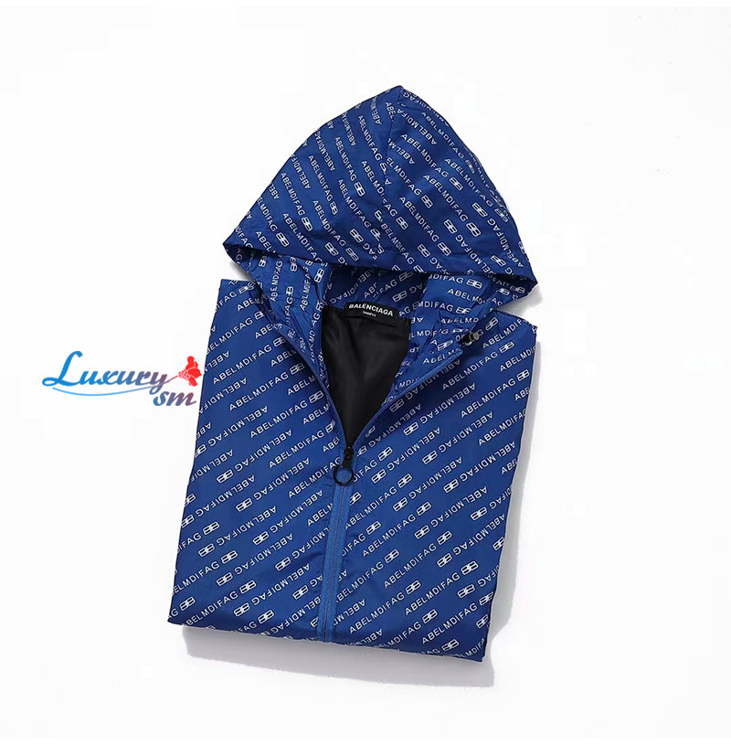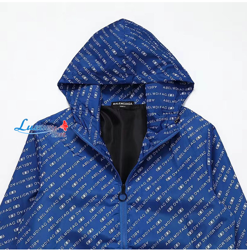 BALENCIAGA-08259 발렌시아가 블루 나일론 바람막이 후드 재킷 남여공용