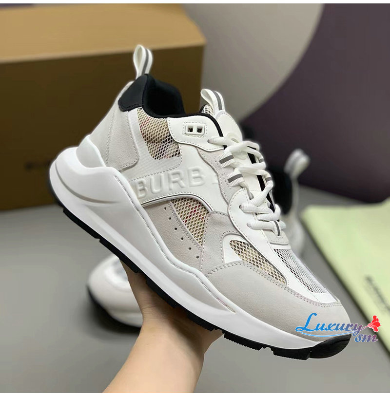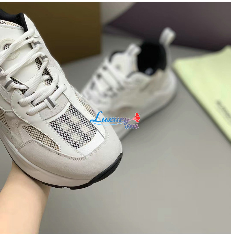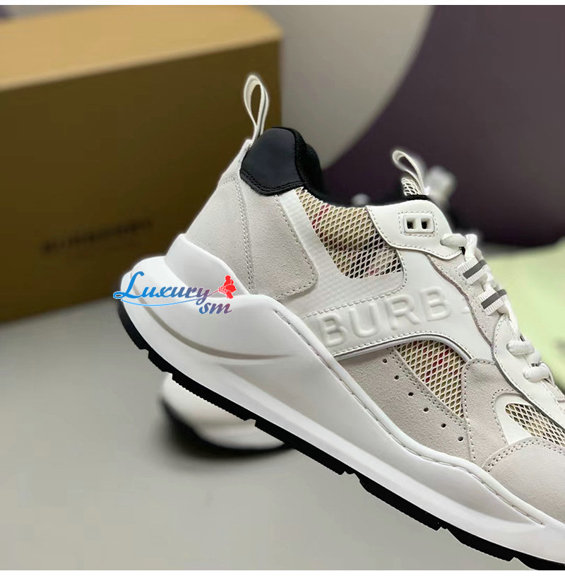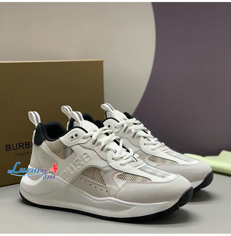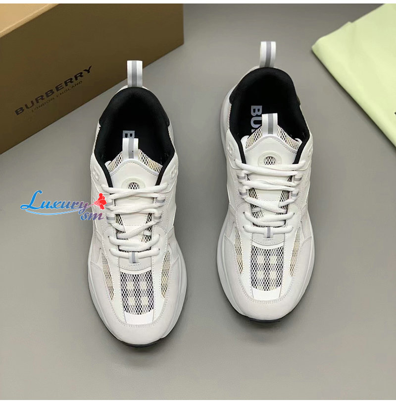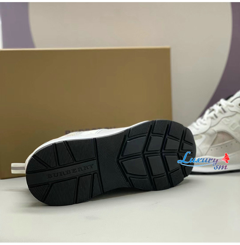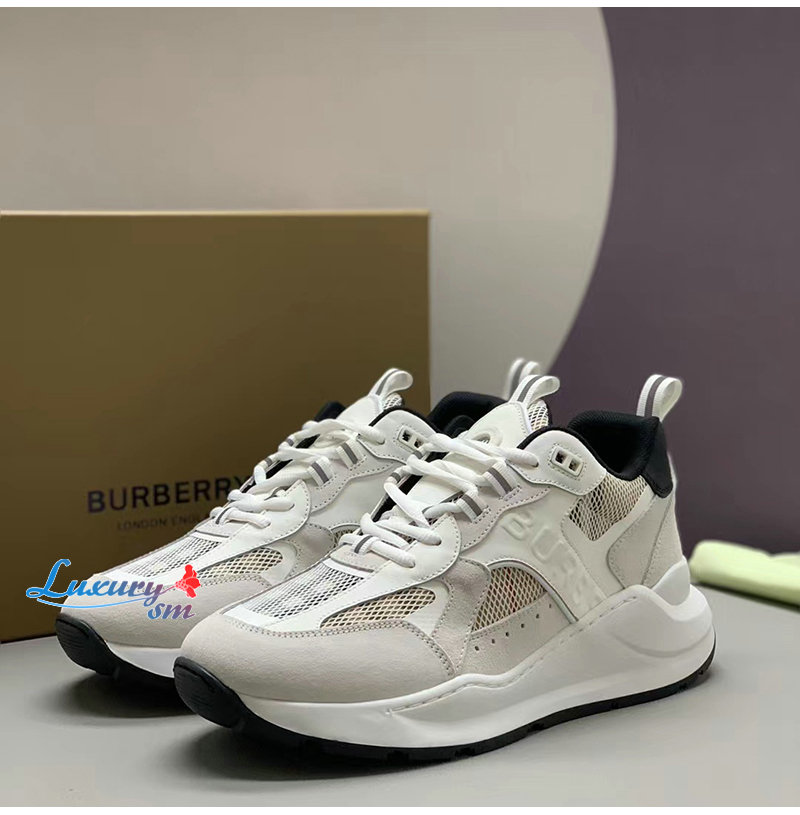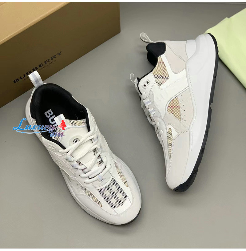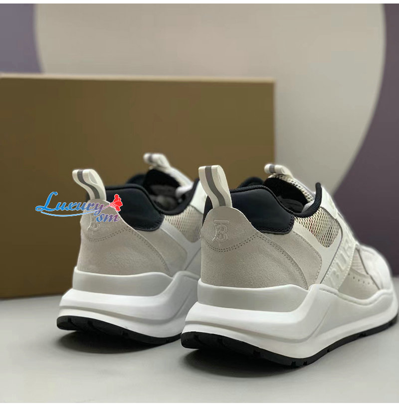 BURBERRY-80623611 버버리 화이트 레더 스웨이드 메시 스니커즈 남성용