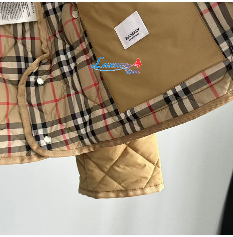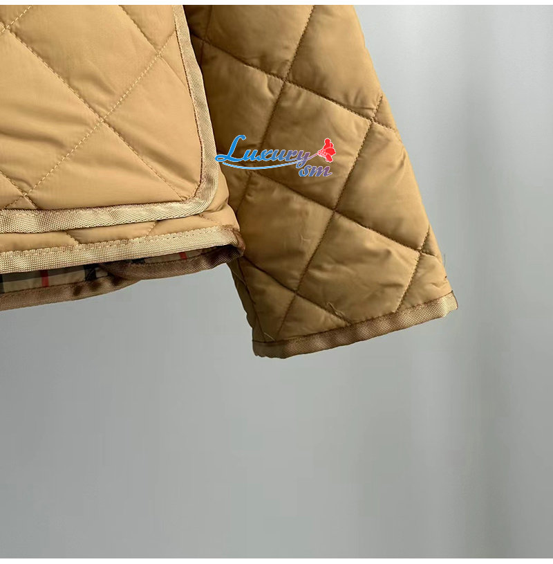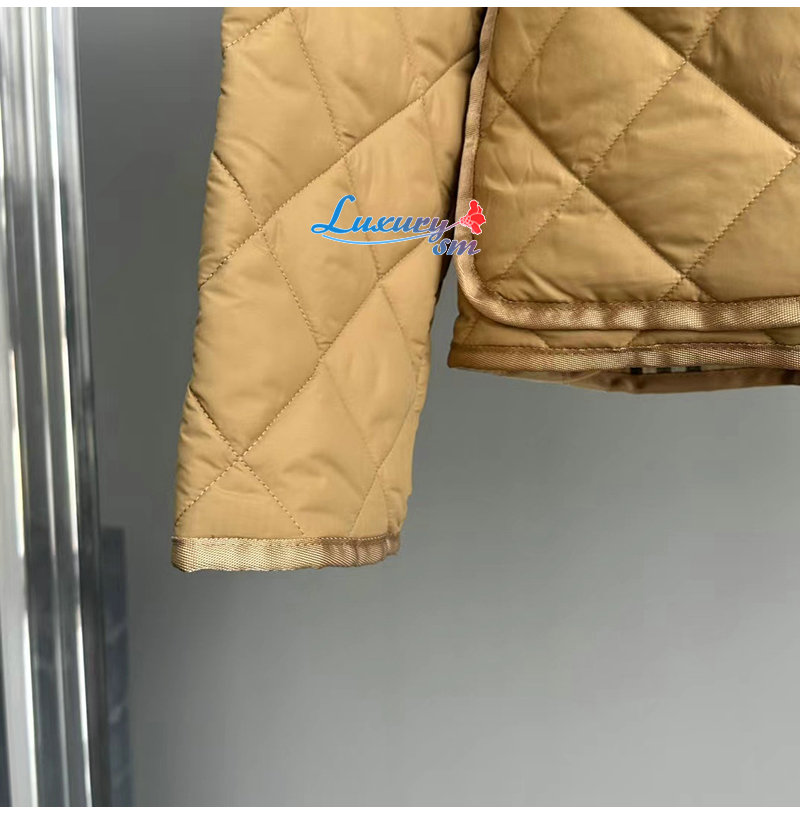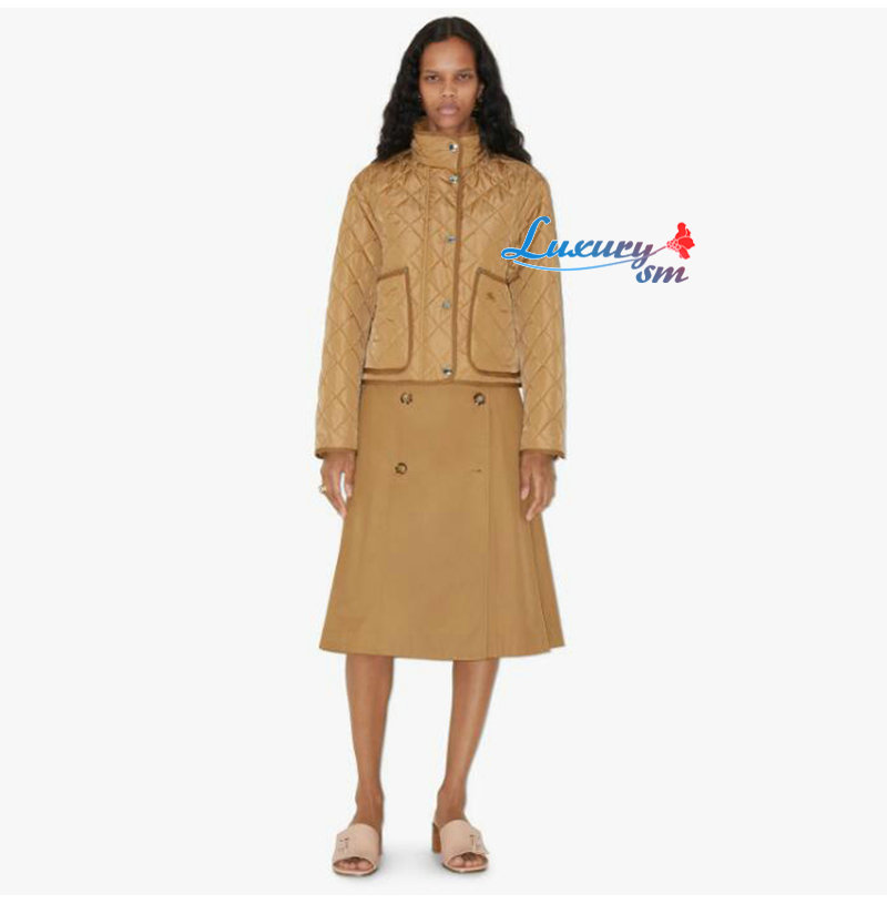 BURBERRY-80709691 버버리 베이지 다이아몬드 퀼팅 나일론 크롭 재킷 여성용