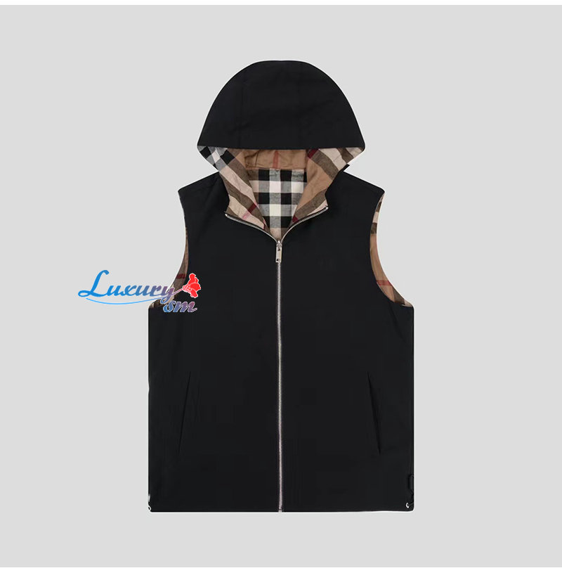 BURBERRY-08297 버버리 블랙 체크 무늬 양면 바람막이 조끼 남성용