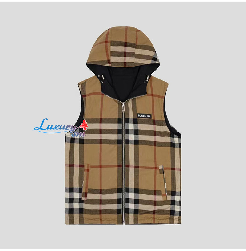 BURBERRY-08296 버버리 베이지 체크 무늬 양면 바람막이 조끼 남성용