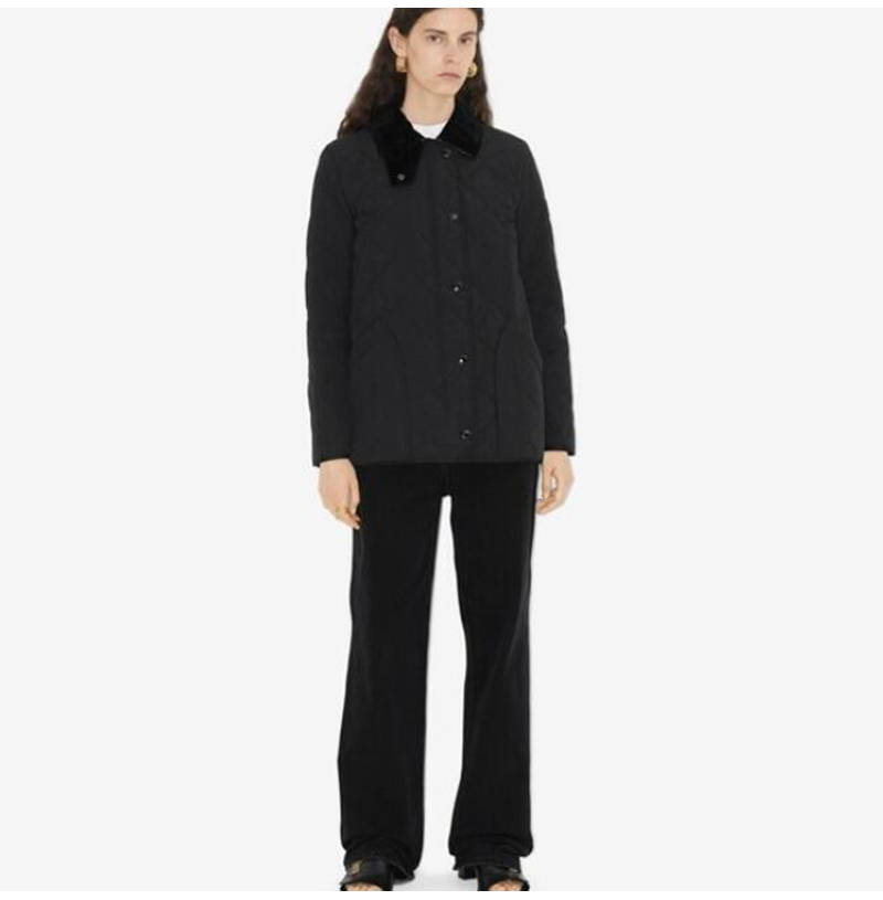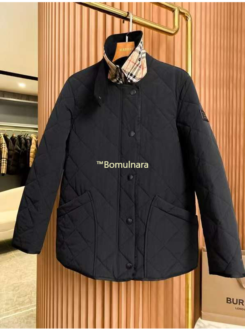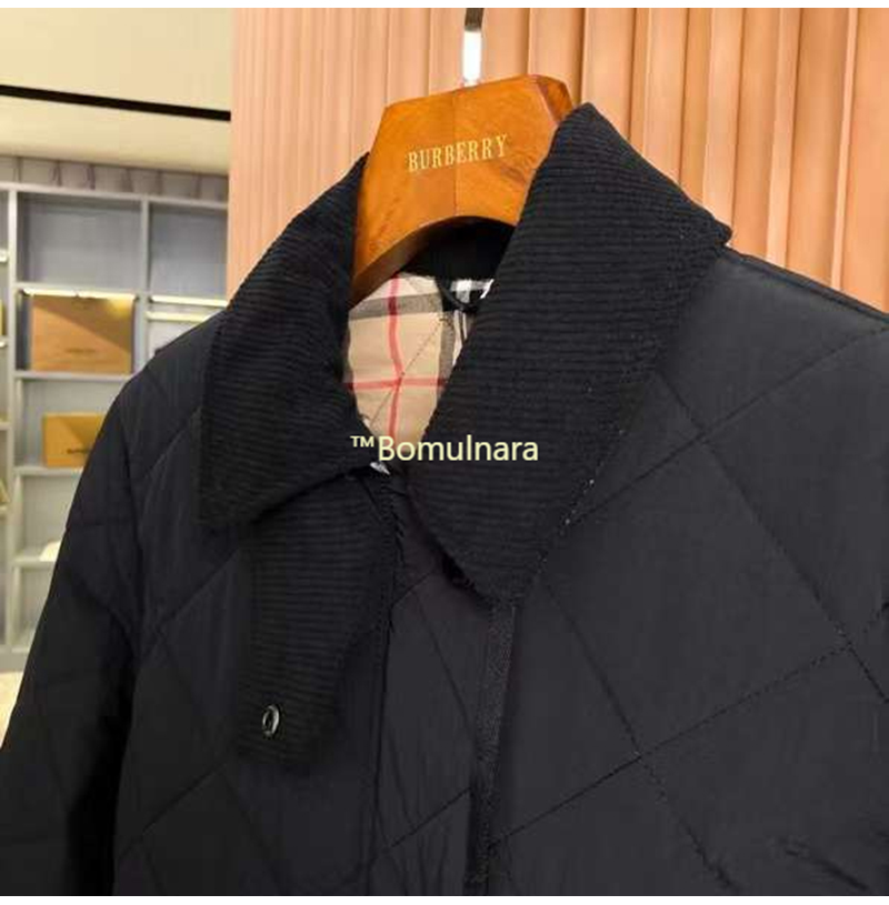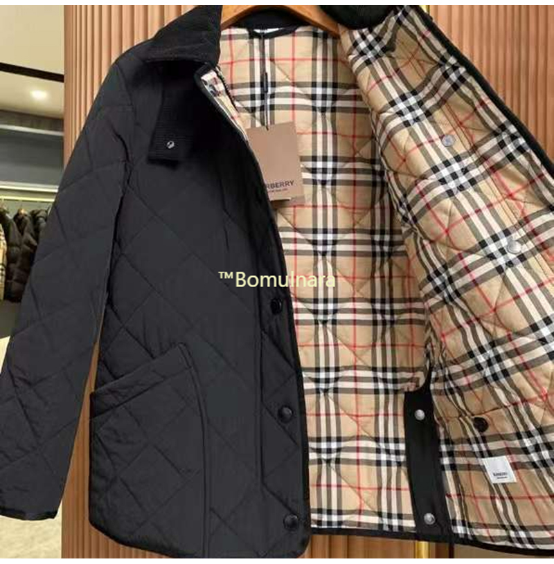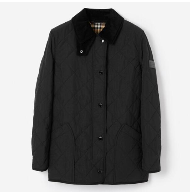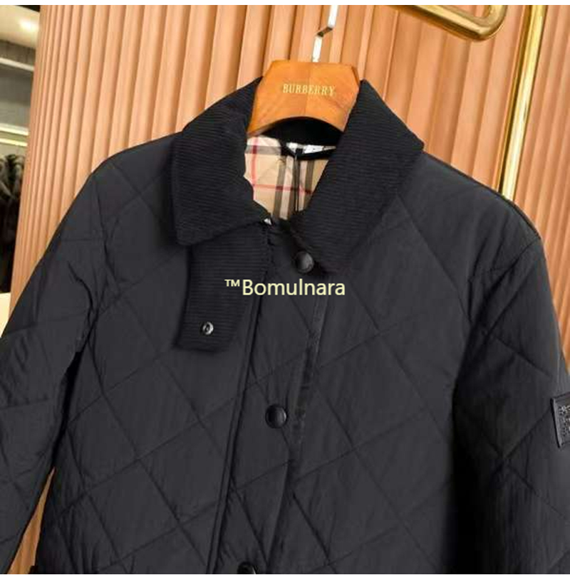 BURBERRY-80217 버버리 블랙 코듀로이 다이아몬드 퀼팅 반 재킷 여성용