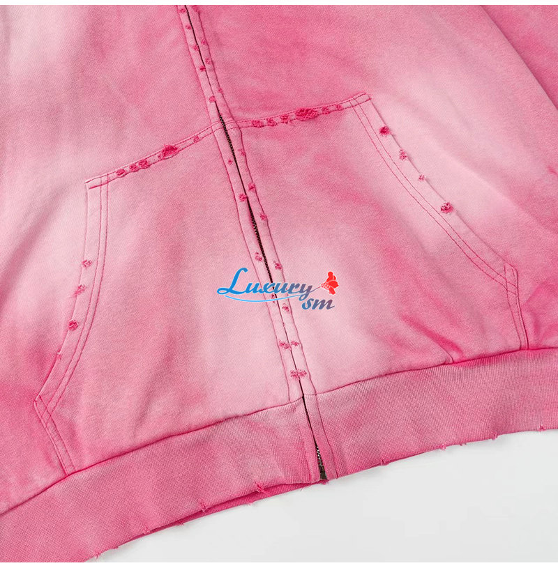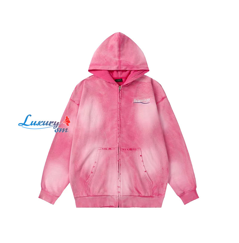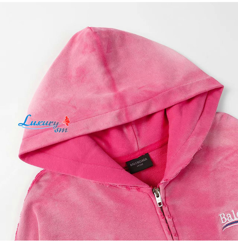 BALENCIAGA-09034 발렌시아가 핑크 아플리케 장식 워싱 빈티지 후드 재킷 남여공용