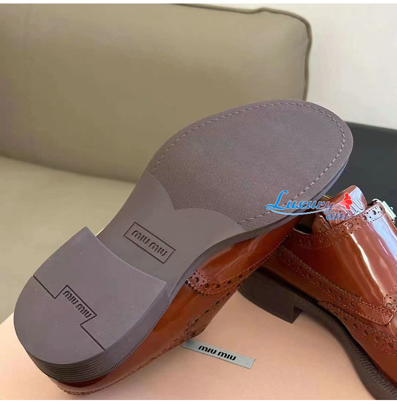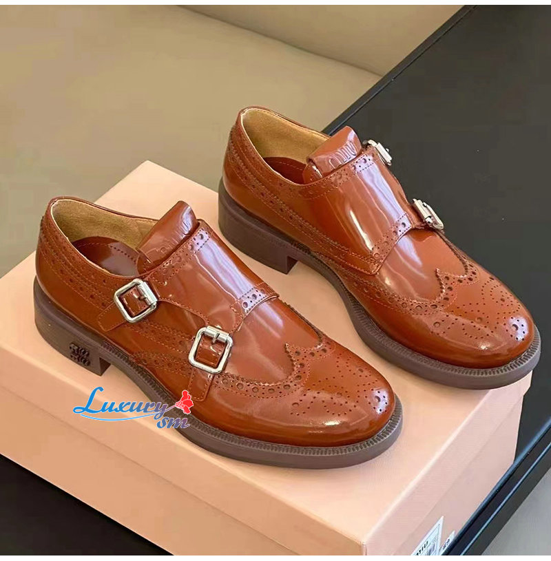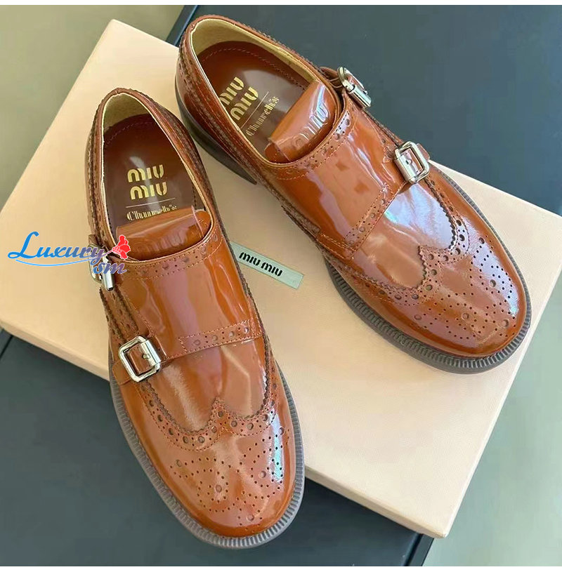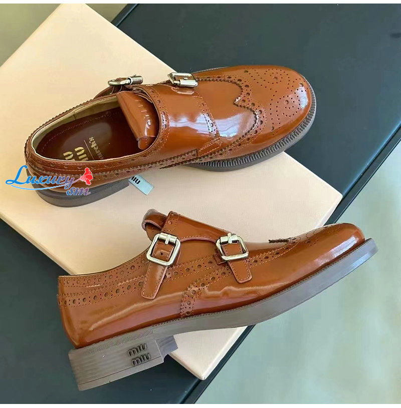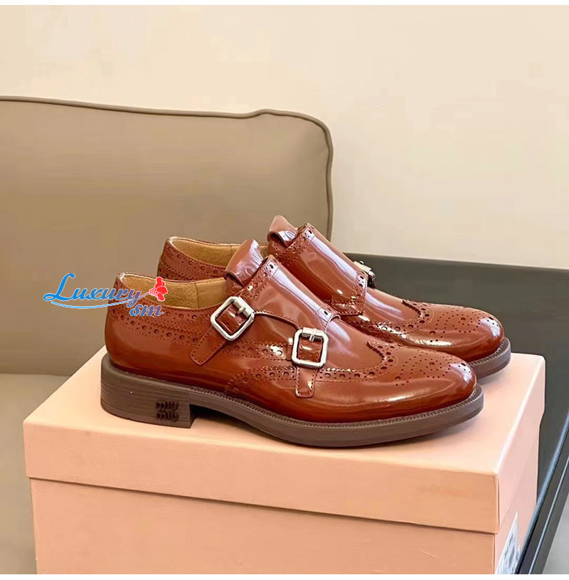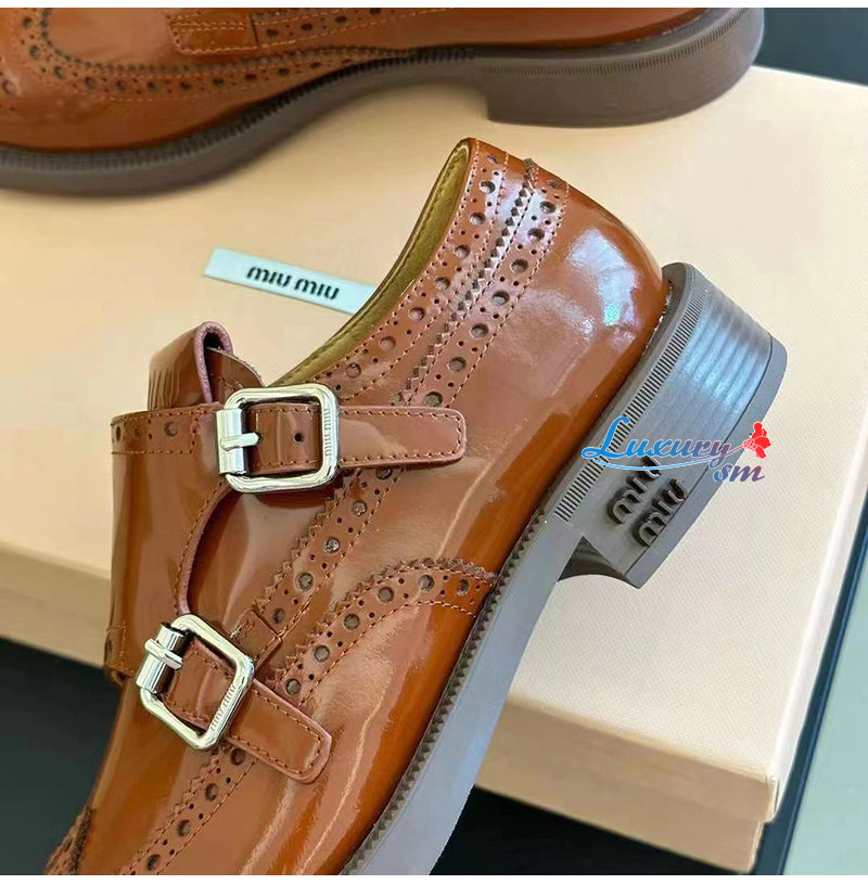 MIUMIU-5E039E 미우미우 타바코 처치스 x 미우미우 더블 몽크 브로그 슈즈 여성용