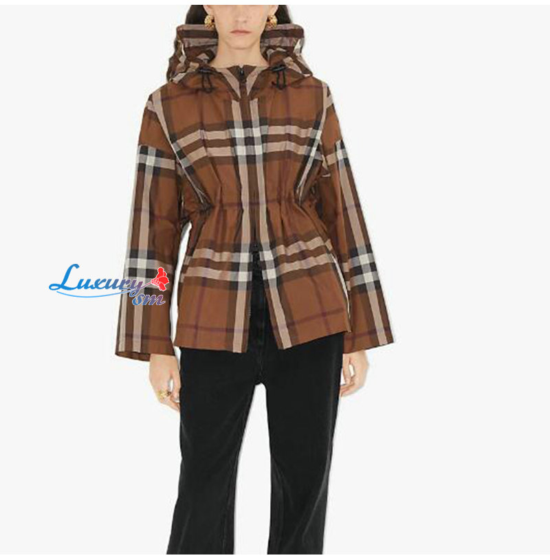 BURBERRY-80498041 버버리 브라운 체크 라이트 쇼트 파카 여성용