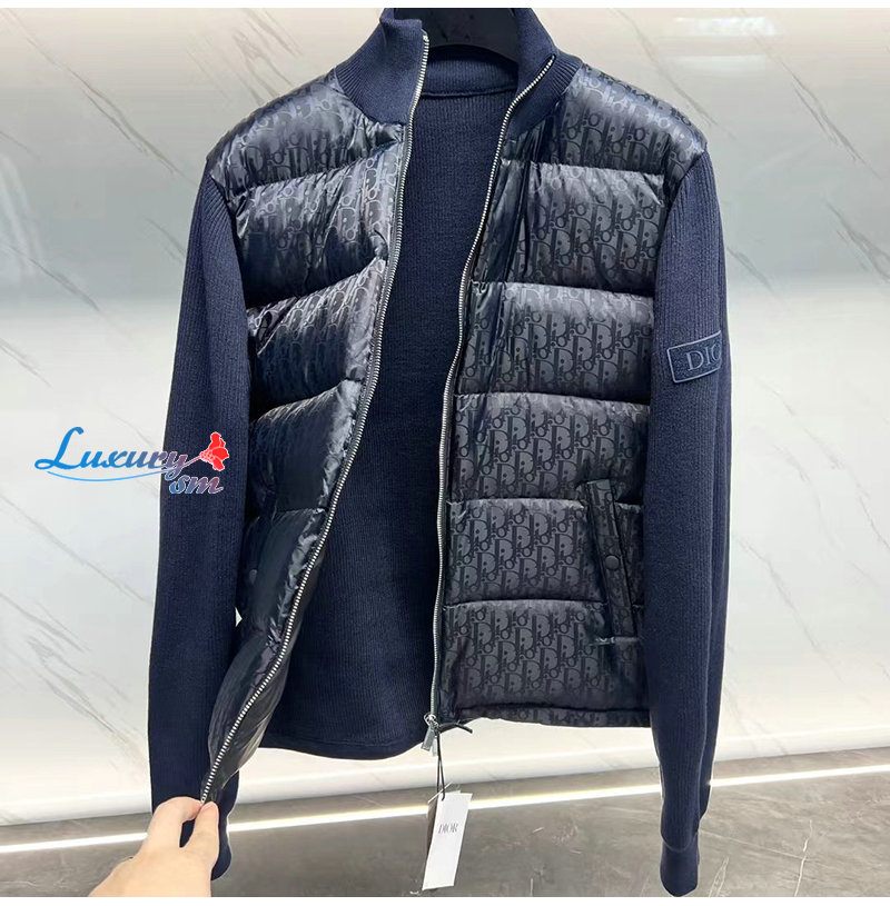DIOR-09157 디올 네이비 Dior Oblique 퀄팅 다운 재킷 남성용
