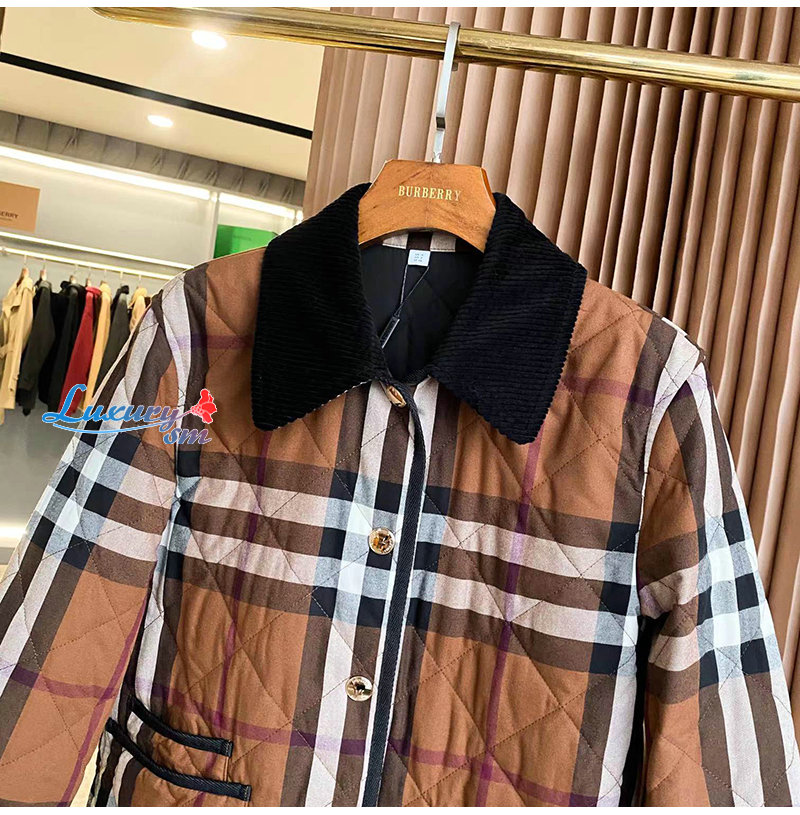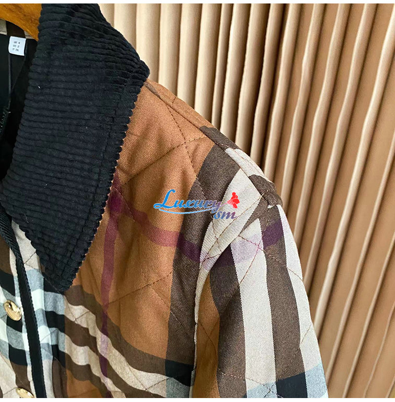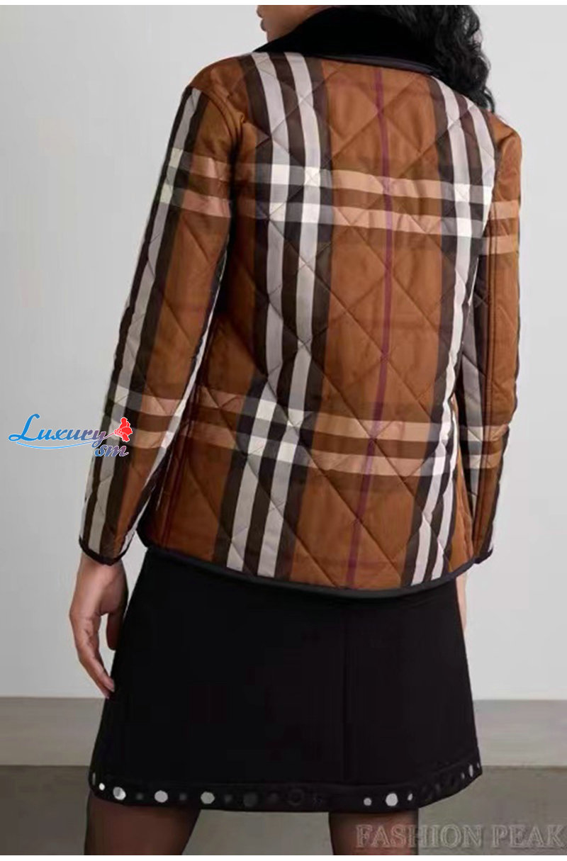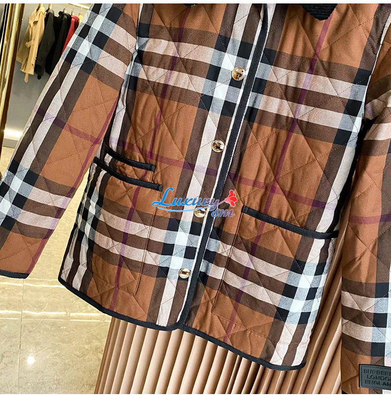 BURBERRY-09183 버버리 브라운 체크 무늬 퀄팅 재킷 여성용