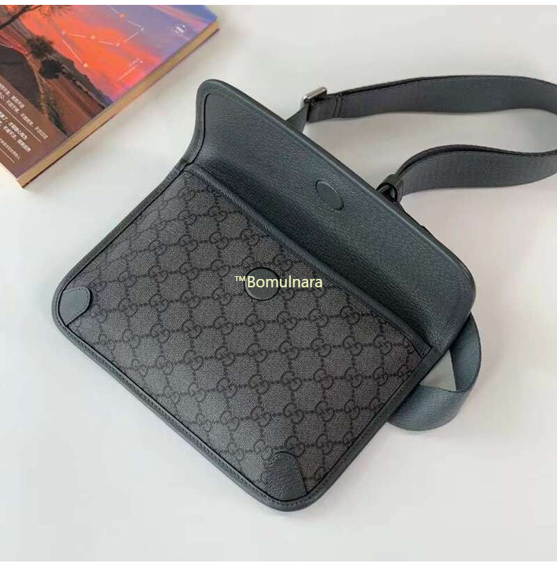 그레이&블랙 GG 수프림 캔버스 / 블랙 가죽 트리밍