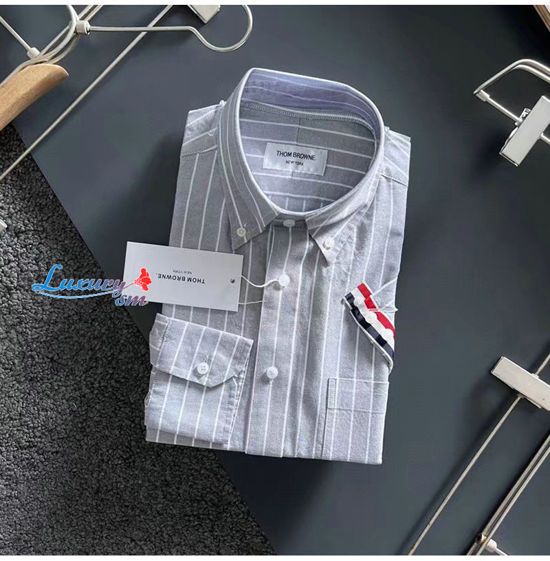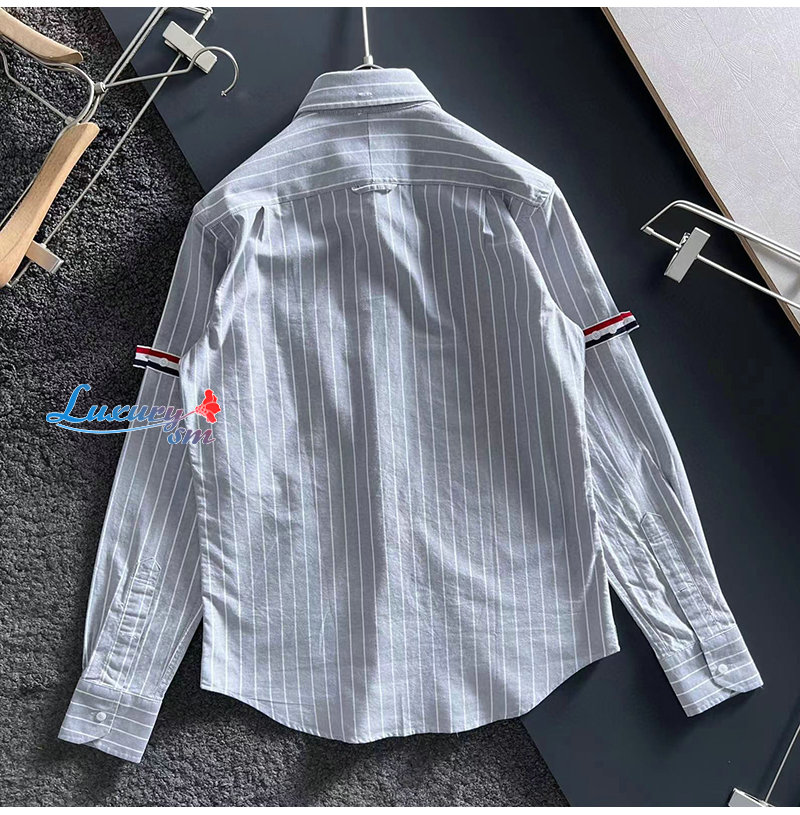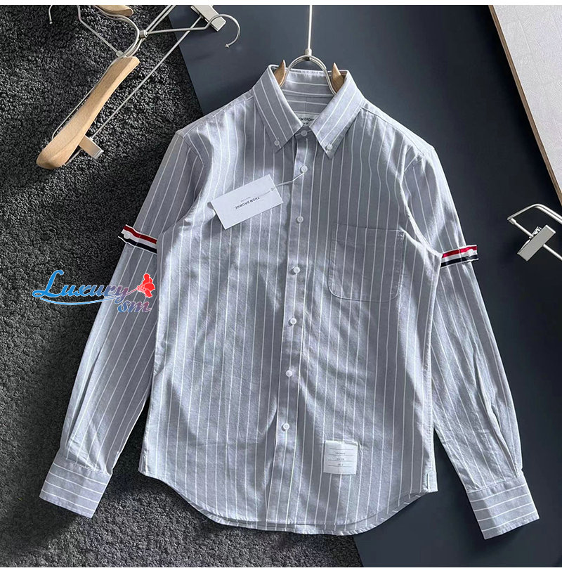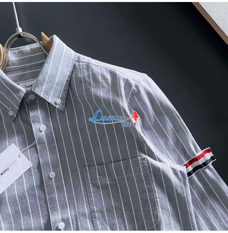 THOM BROWNE-09213 톰 브라운 그레이 스트라이프 장식 셔츠 남성용