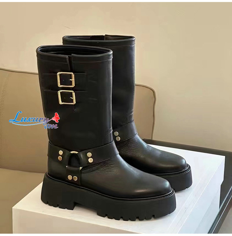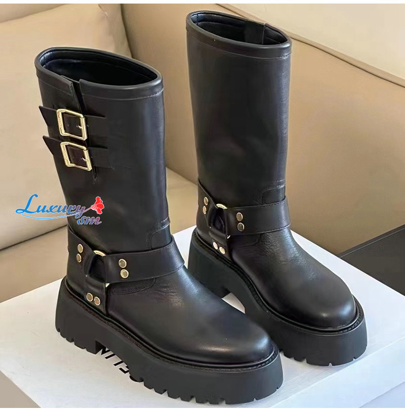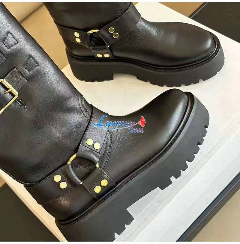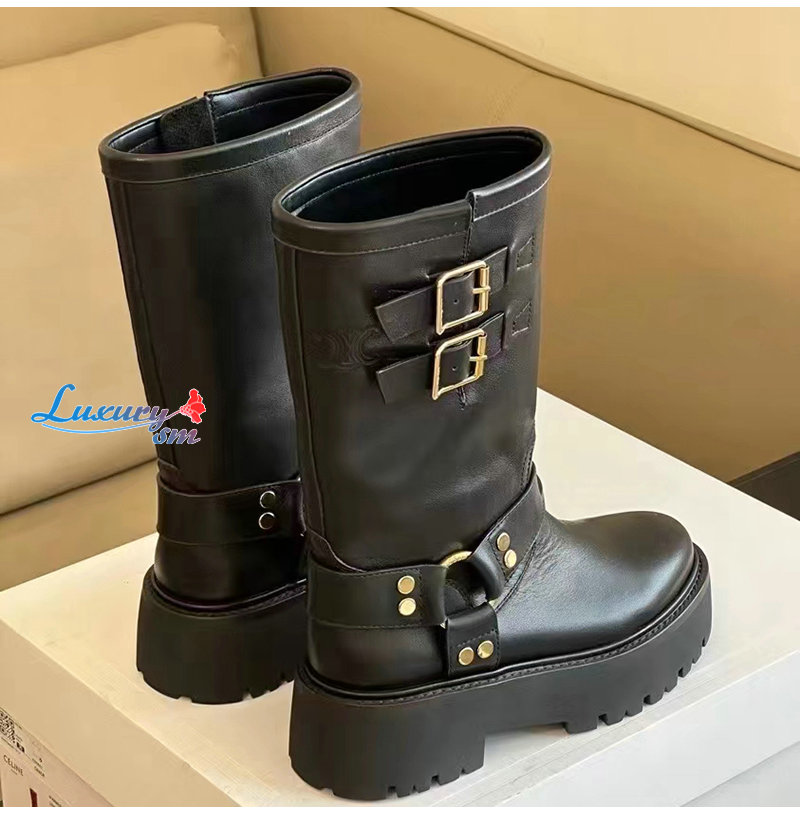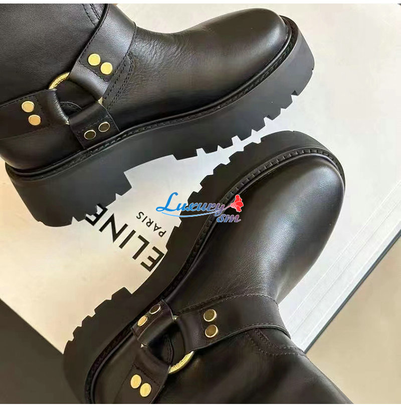 CELINE-354573 셀린느 블랙 하네스 벌키 미드 바이커 부츠 여성용