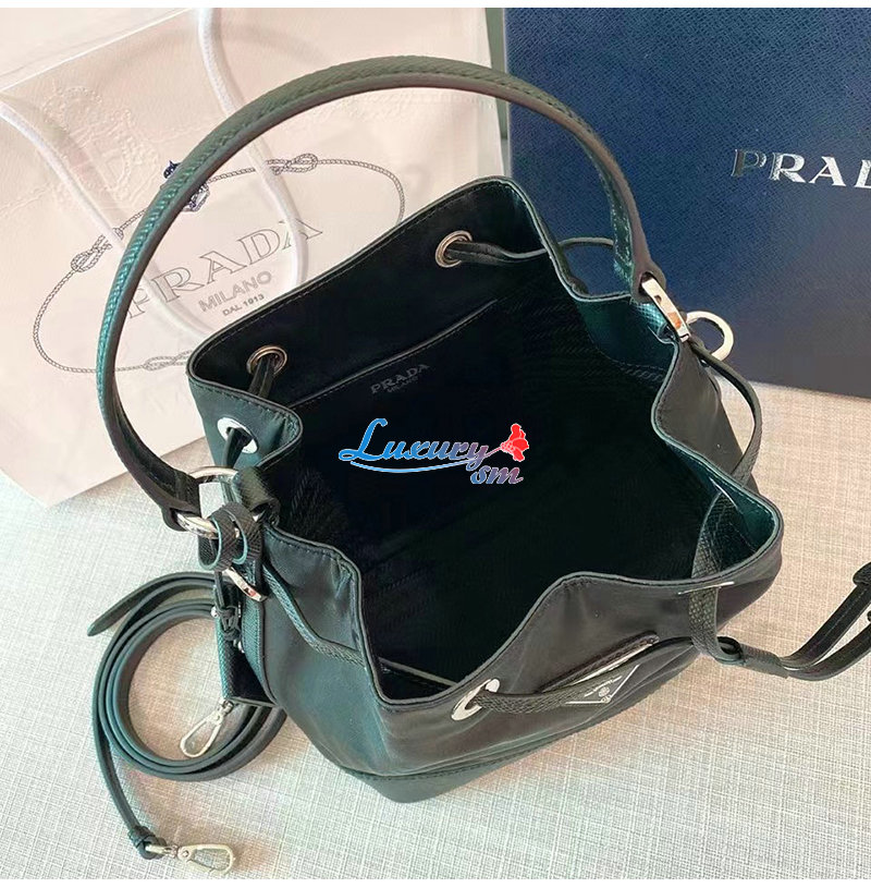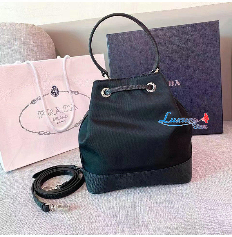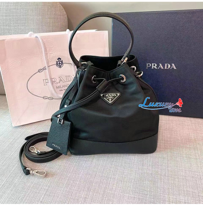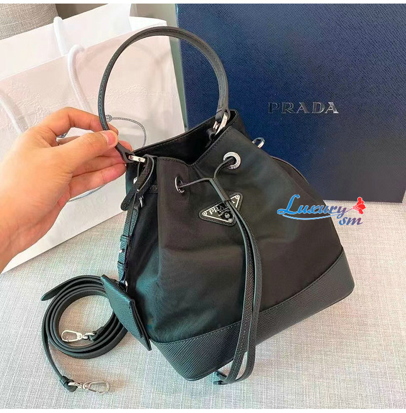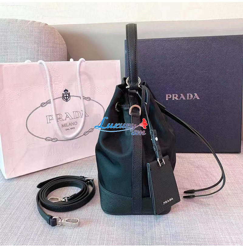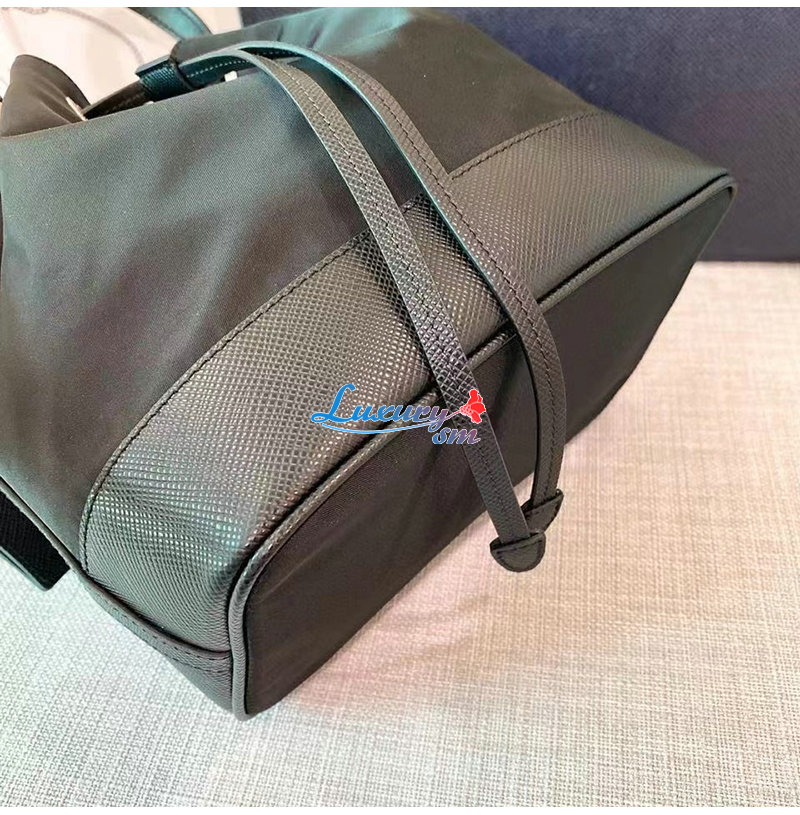 [스페셜오더]PRADA-1BE055 프라다 블랙 나일론 사피아노 가죽 버킷 백