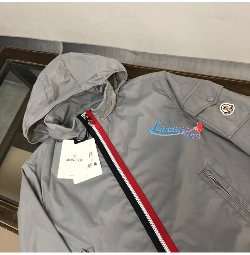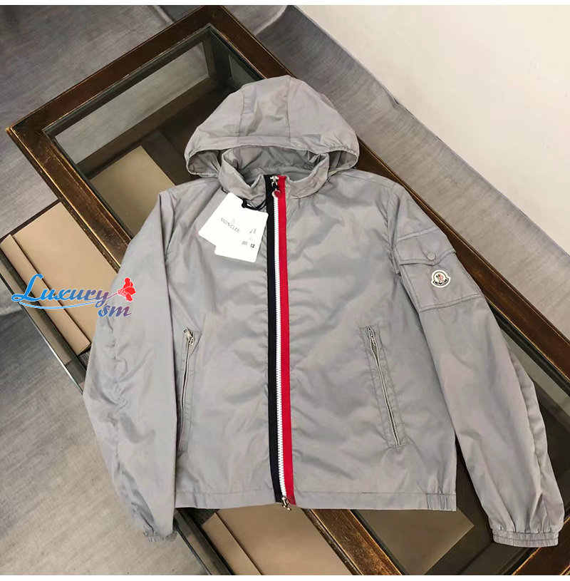 MONCLER-10067 몽클레어 그레이 스트라이프 장식 바람막이 후드 재킷 남성용