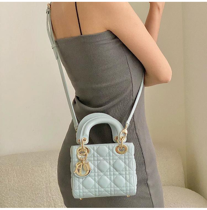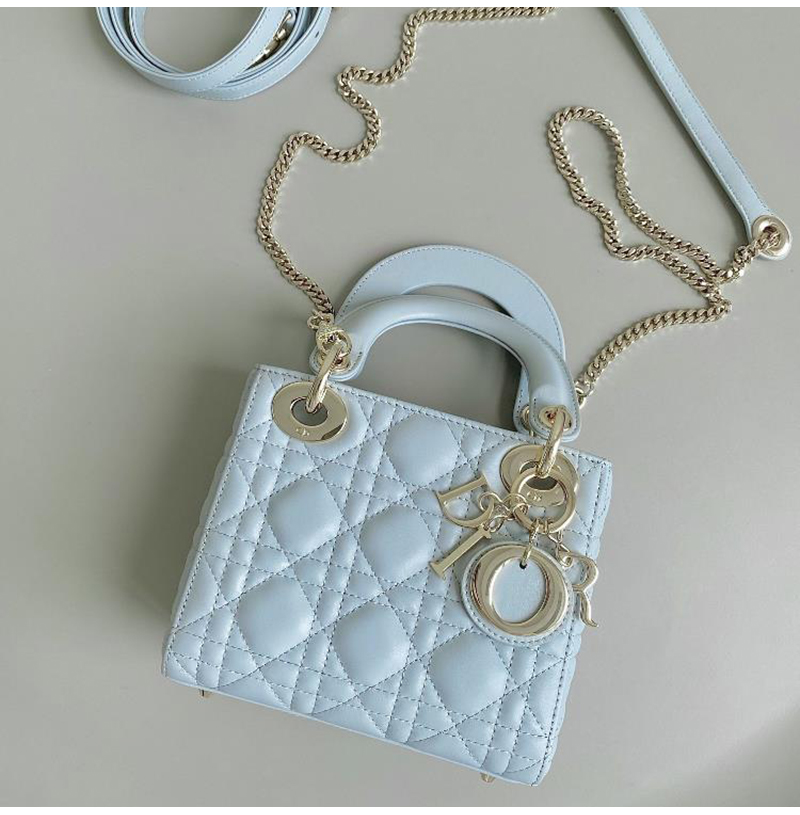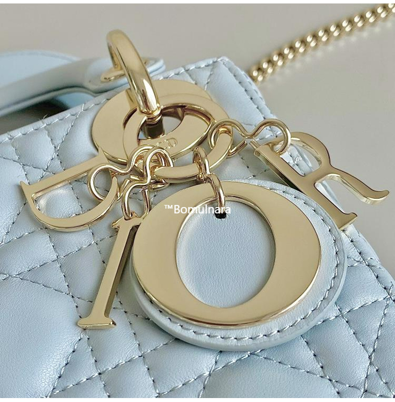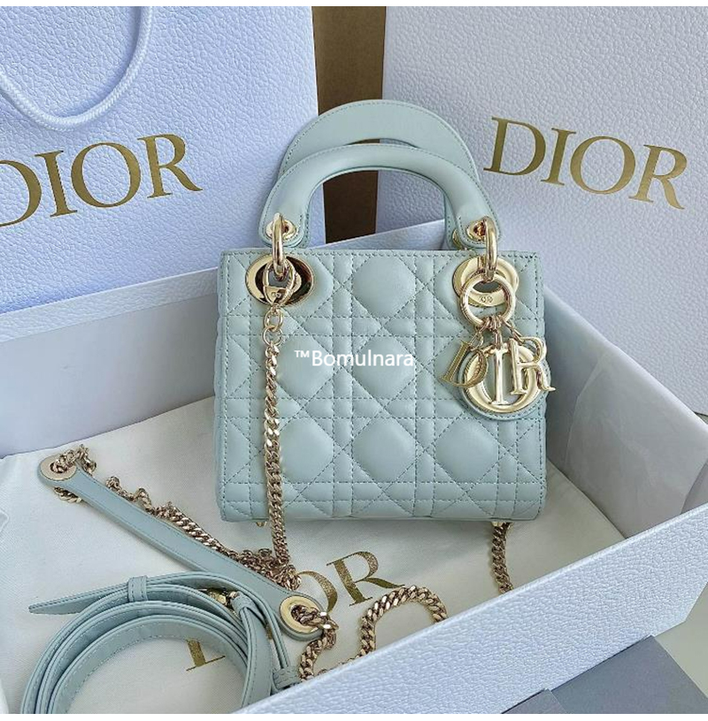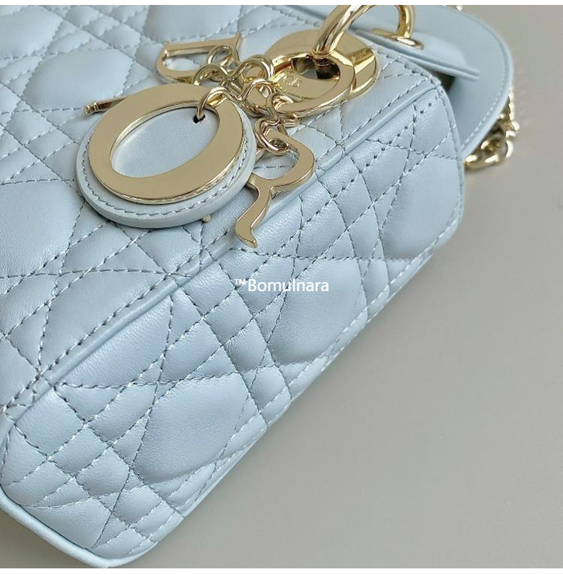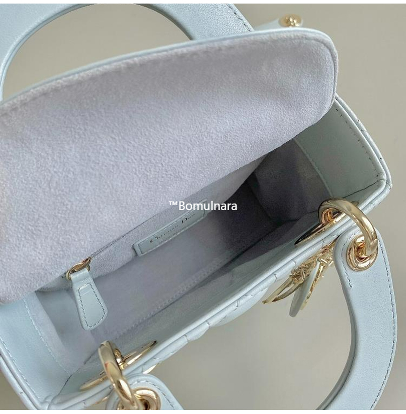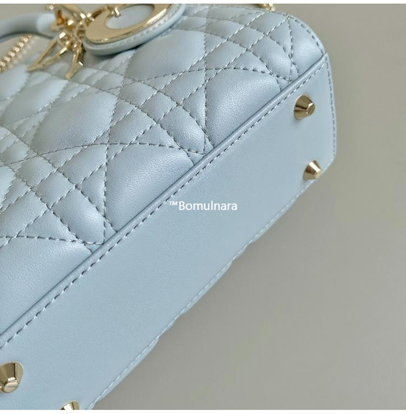 [스페셜오더]DIOR-M0505 디올 플라시드 블루 까나쥬 골드 LADY DIOR 미니 핸드백 17cm