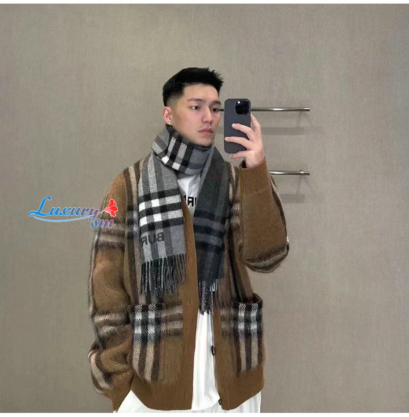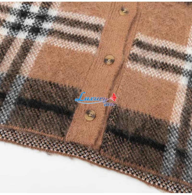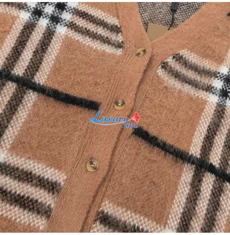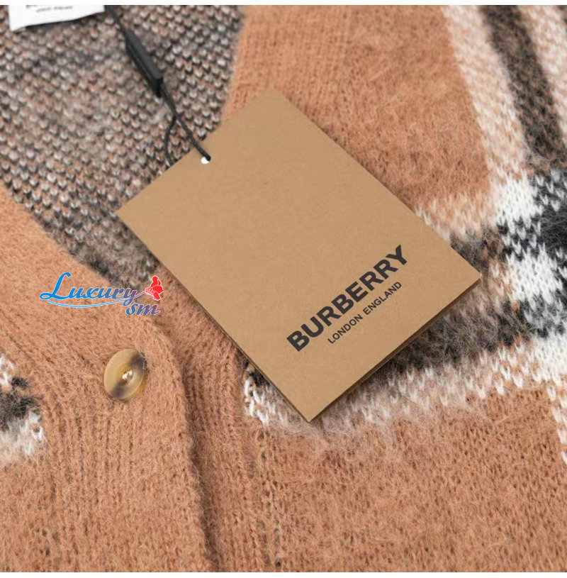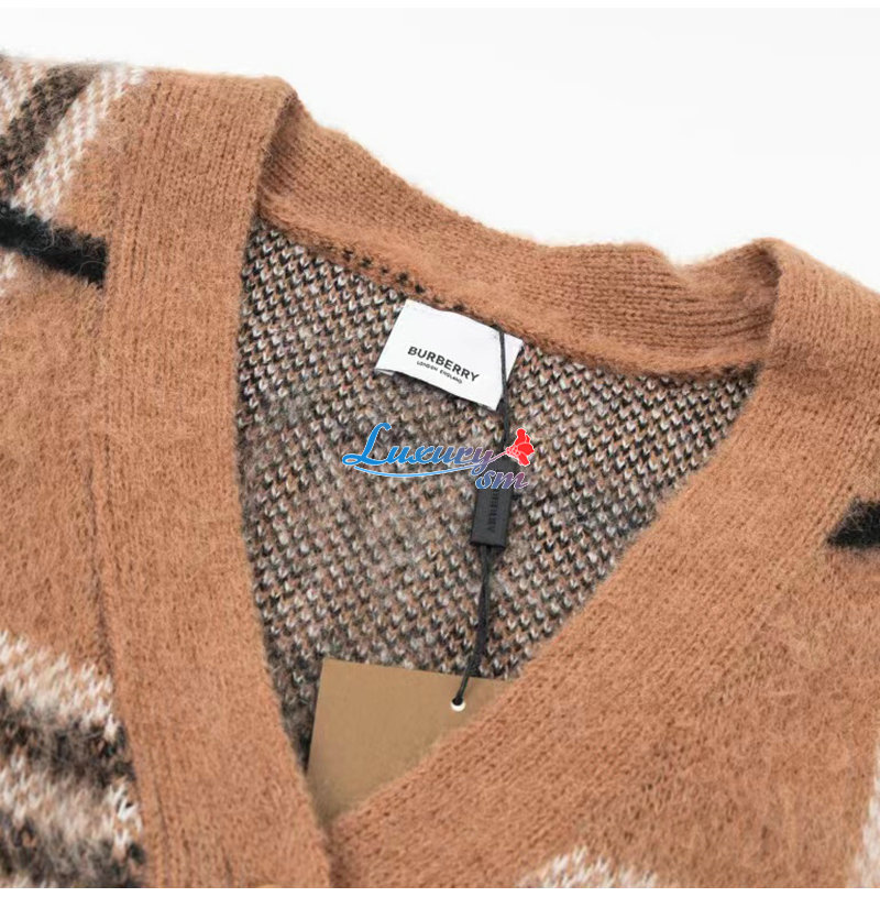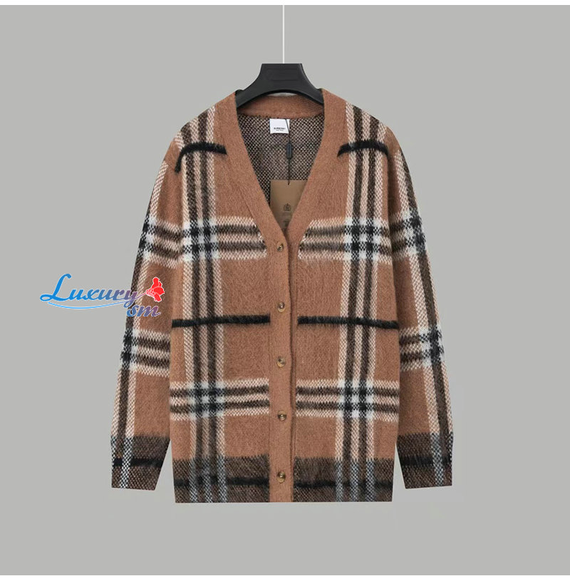 BURBERRY-10071 버버리 브라운 모헤어 체크 무늬 가디건 남여공용
