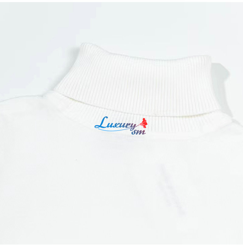 THOM BROWNE-10109 톰 브라운 화이트 스트라이프 장식 목폴라 티셔츠 남여공용