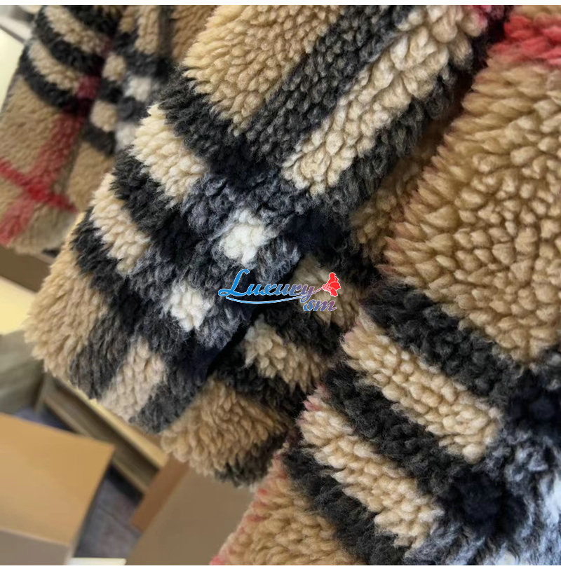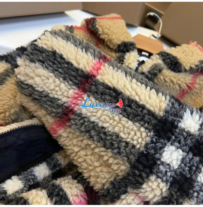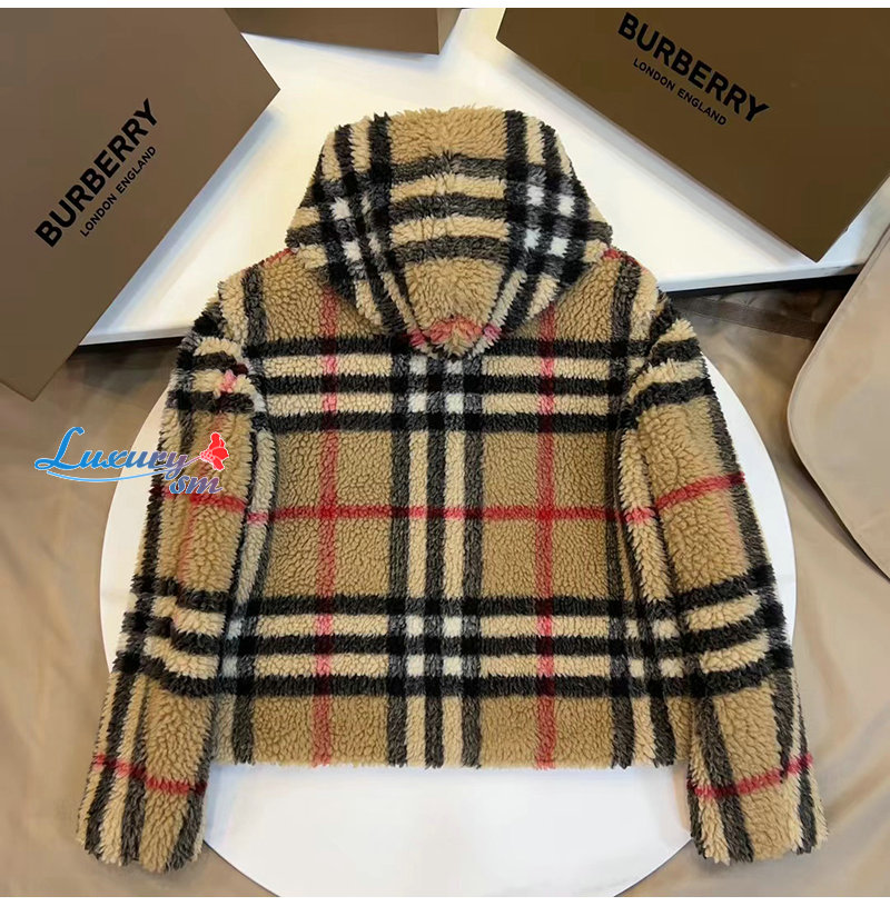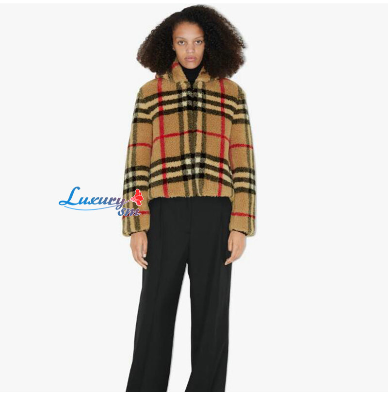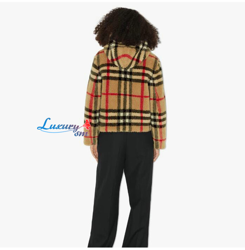 BURBERRY-80727521 버버리 베이지 체크 플리스 후드 재킷 여성용