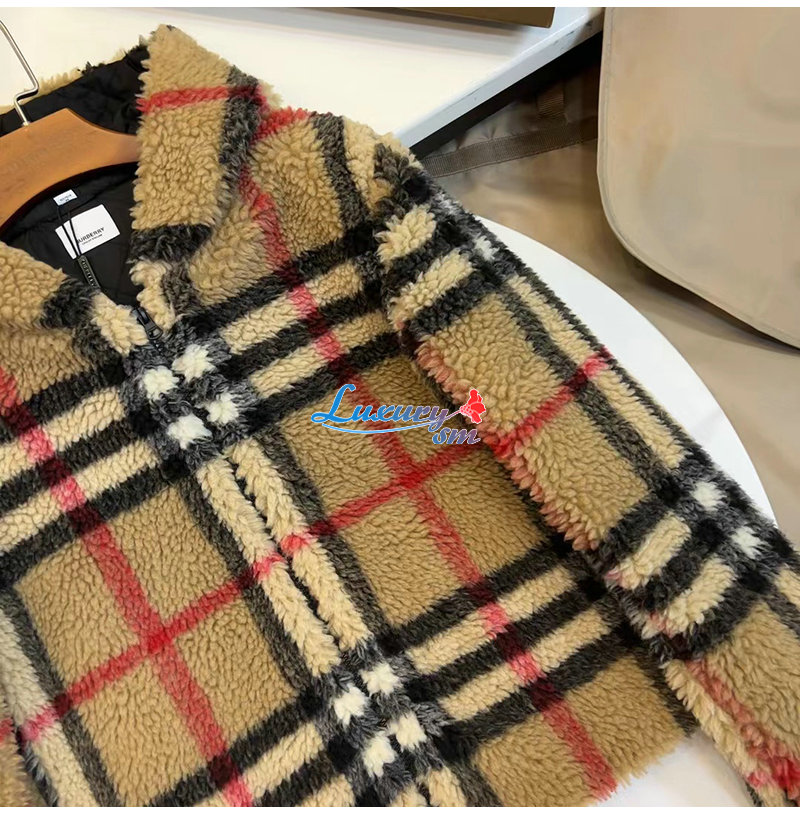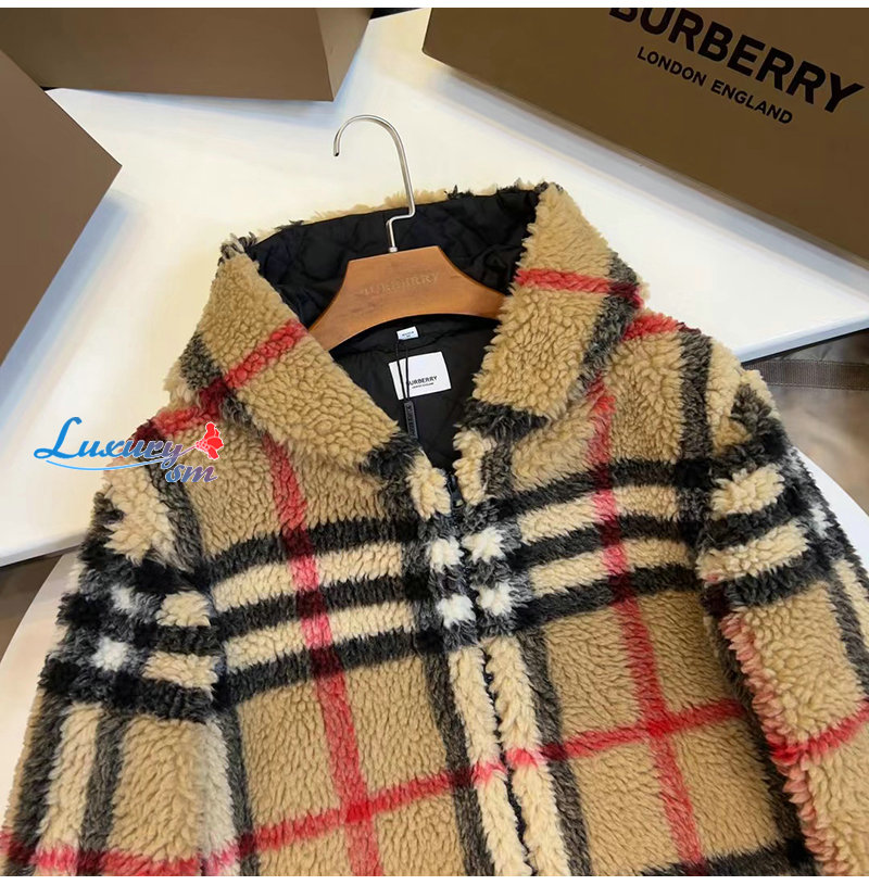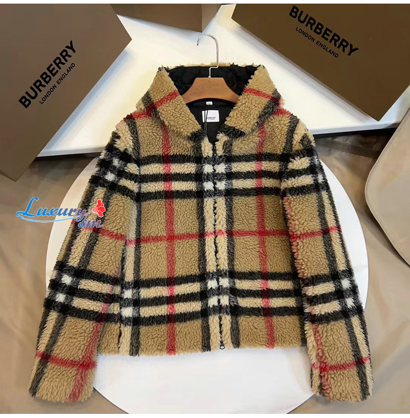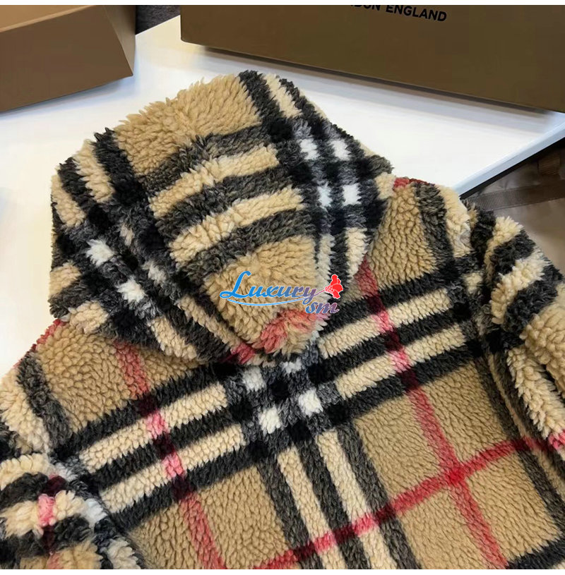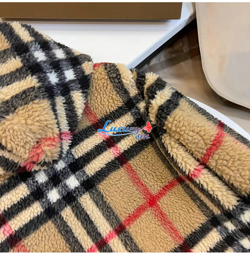 BURBERRY-80727521 버버리 베이지 체크 플리스 후드 재킷 여성용