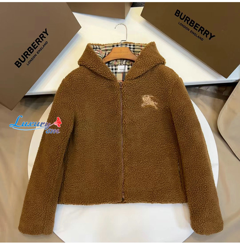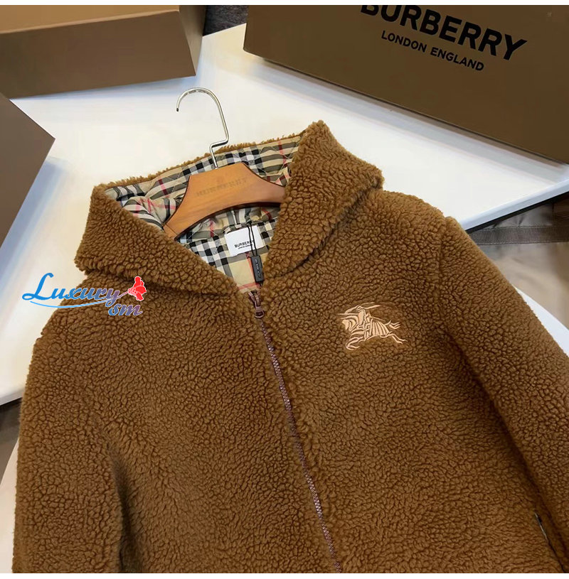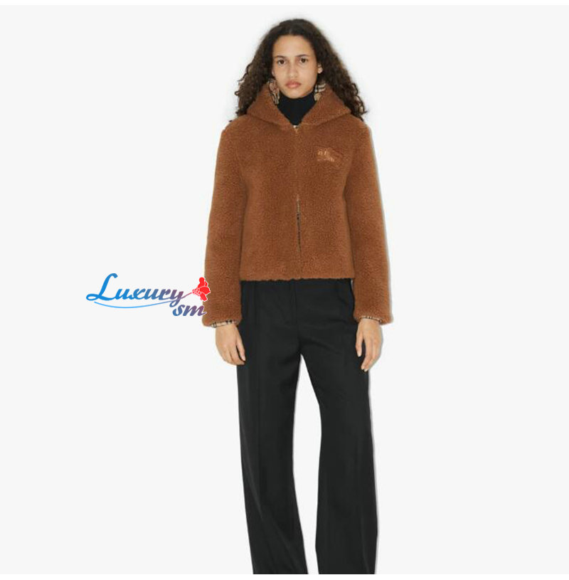 BURBERRY-80726941 버버리 캐러멜 EKD 플리스 후드 재킷 여성용