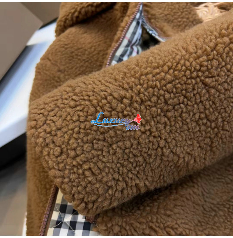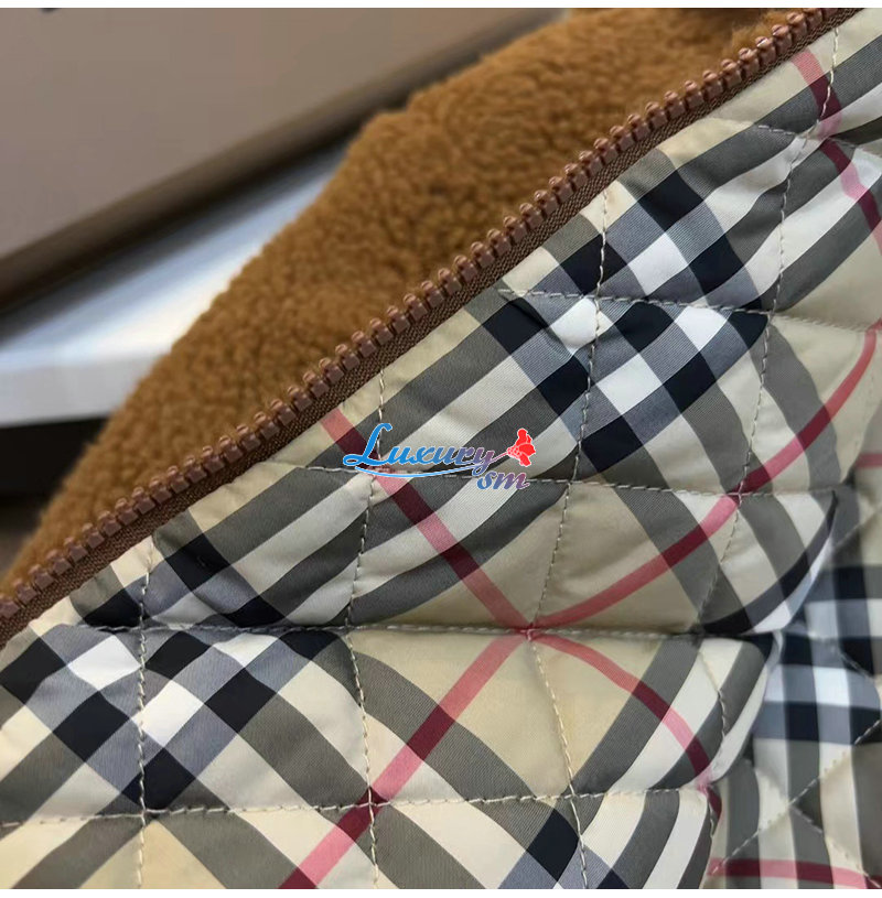 BURBERRY-80727521 버버리 베이지 체크 플리스 후드 재킷 여성용