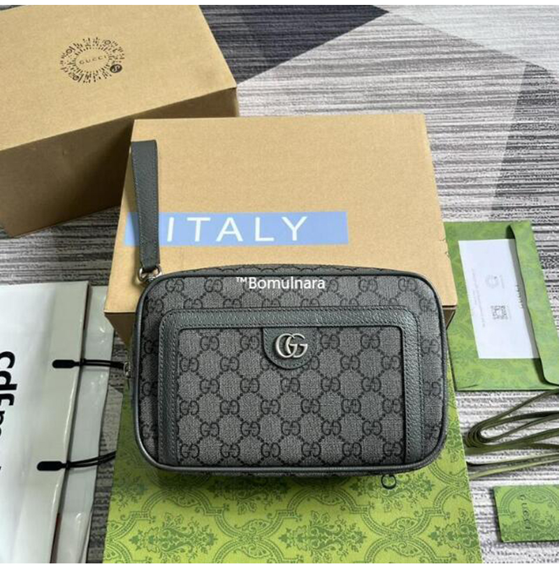 [스페셜오더]GUCCI-760245 1244 구찌 그레이/블랙 GG 오피디아 Web 파우치 23cm