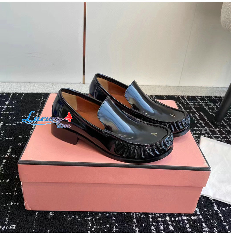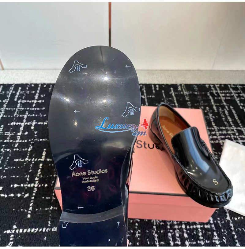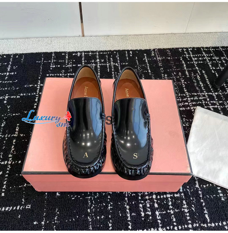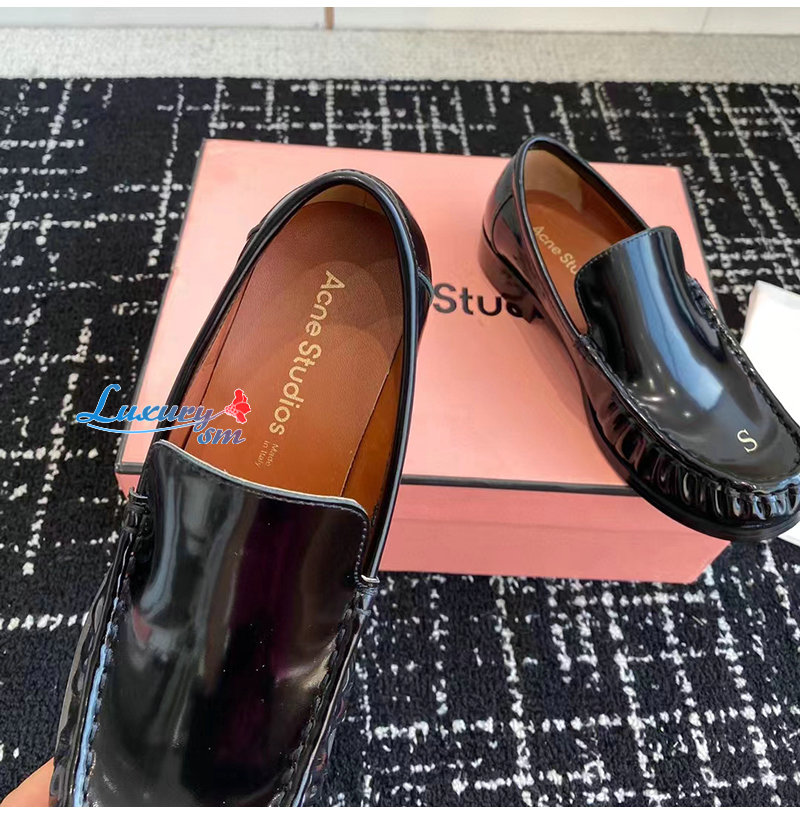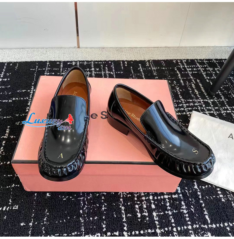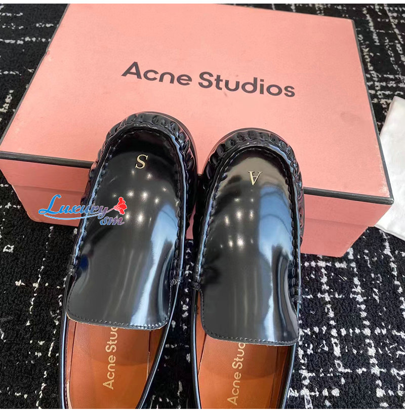 ACNE-아크네 블랙 A & S 자수 가죽 로퍼