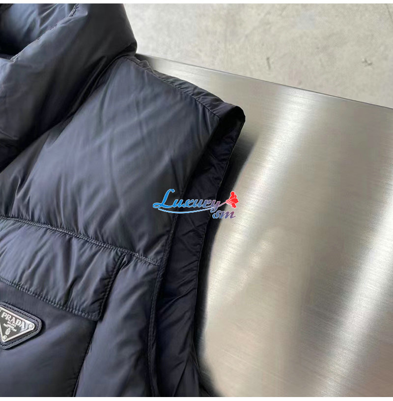 PRADA-10154 프라다 블랙 트라이앵글 로고 패딩 조끼 남성용