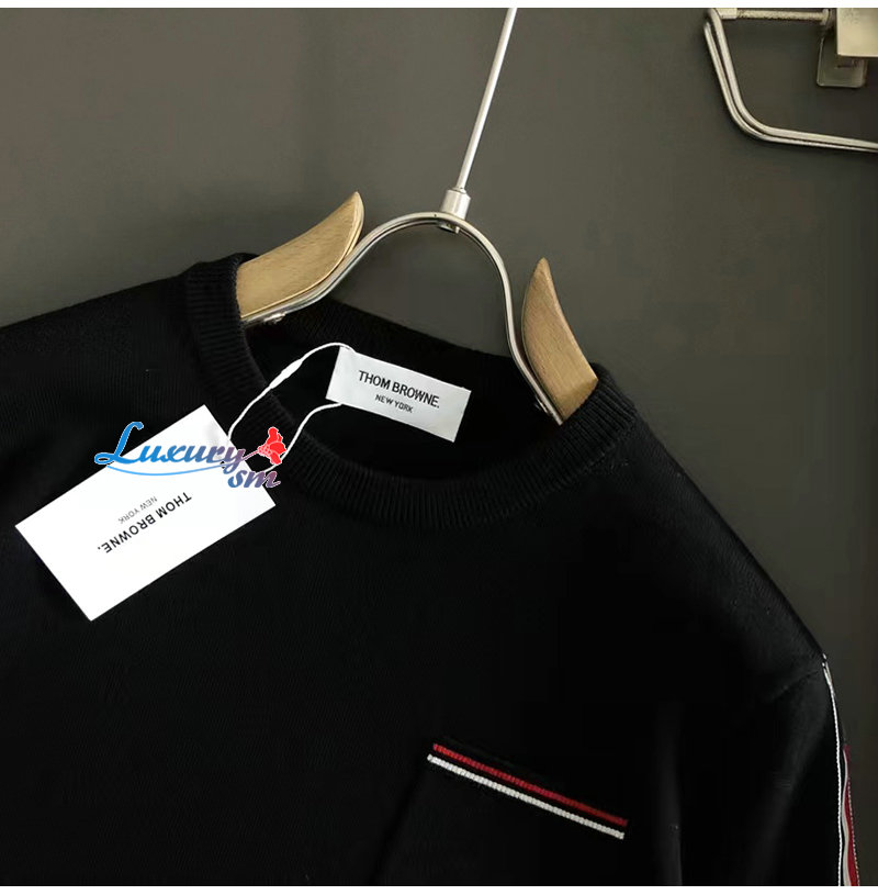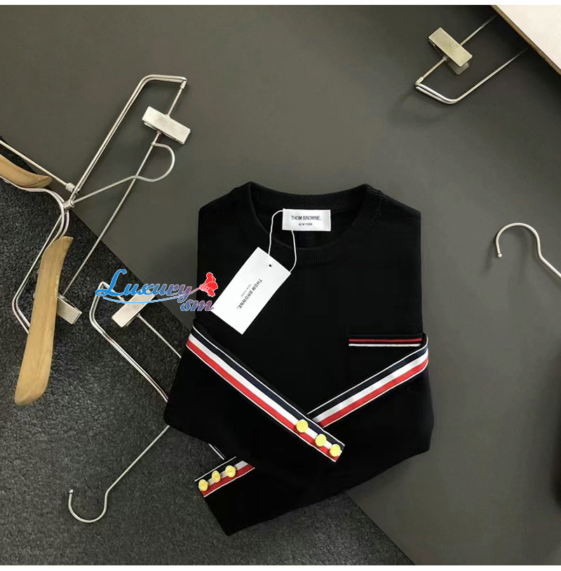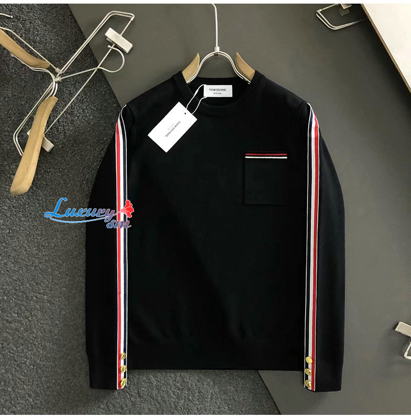 THOM BROWNE-10252 톰 브라운 블랙 스트라이프 장식 스웨터 남성용
