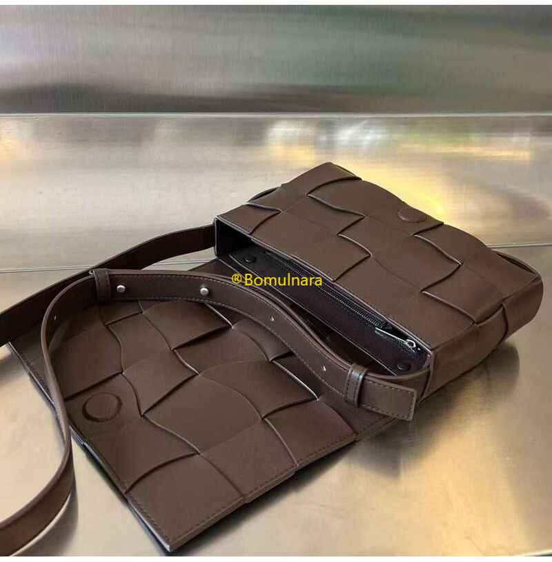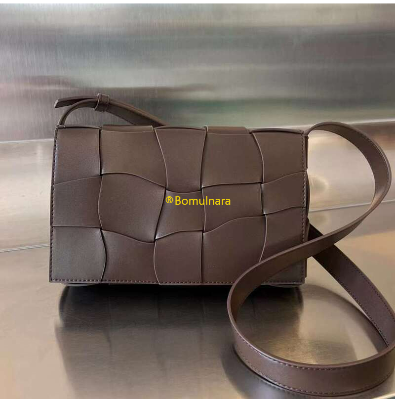[스페셜오더]BOTTEGA VENETA-755161 보테가 베네타 브라운 물결 모양 체크 패턴 미디엄 카세트 백 23cm