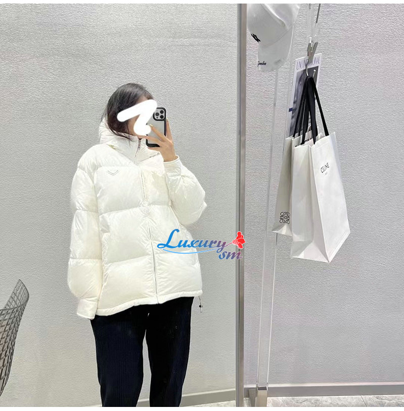 PRADA-11022 프라다 화이트 트라이앵글 로고 패딩 여성용