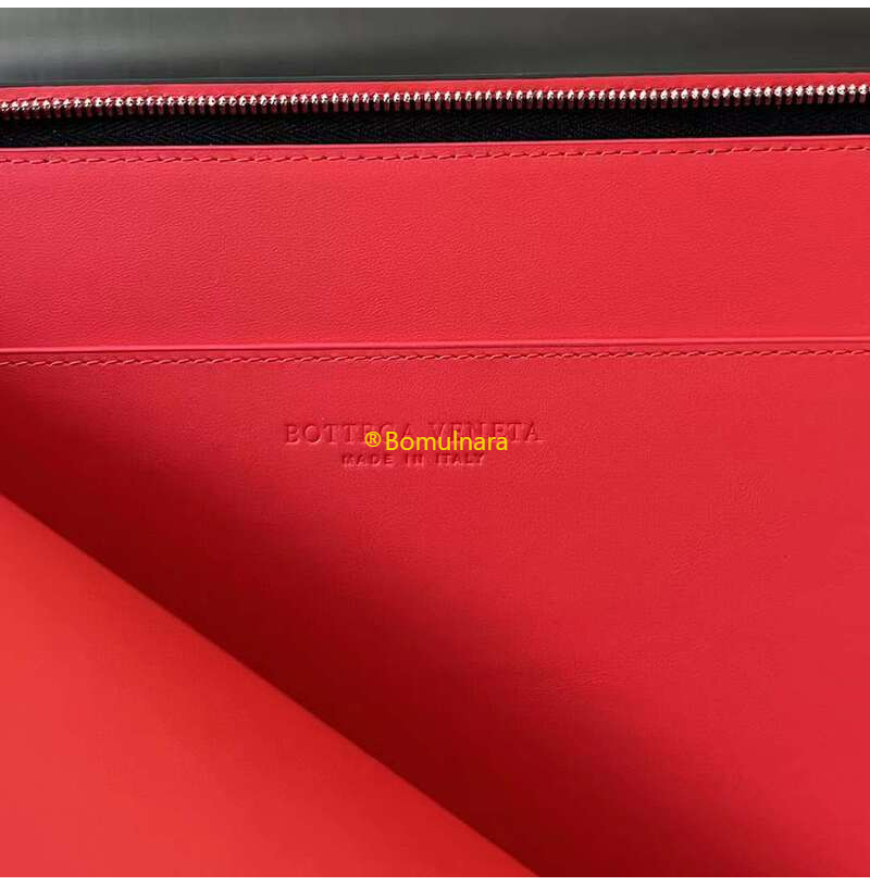 [스페셜오더]BOTTEGA VENETA-607479 보테가 베네타 블랙/레드스톤 인트레치아토 하프 지퍼 파우치 33cm