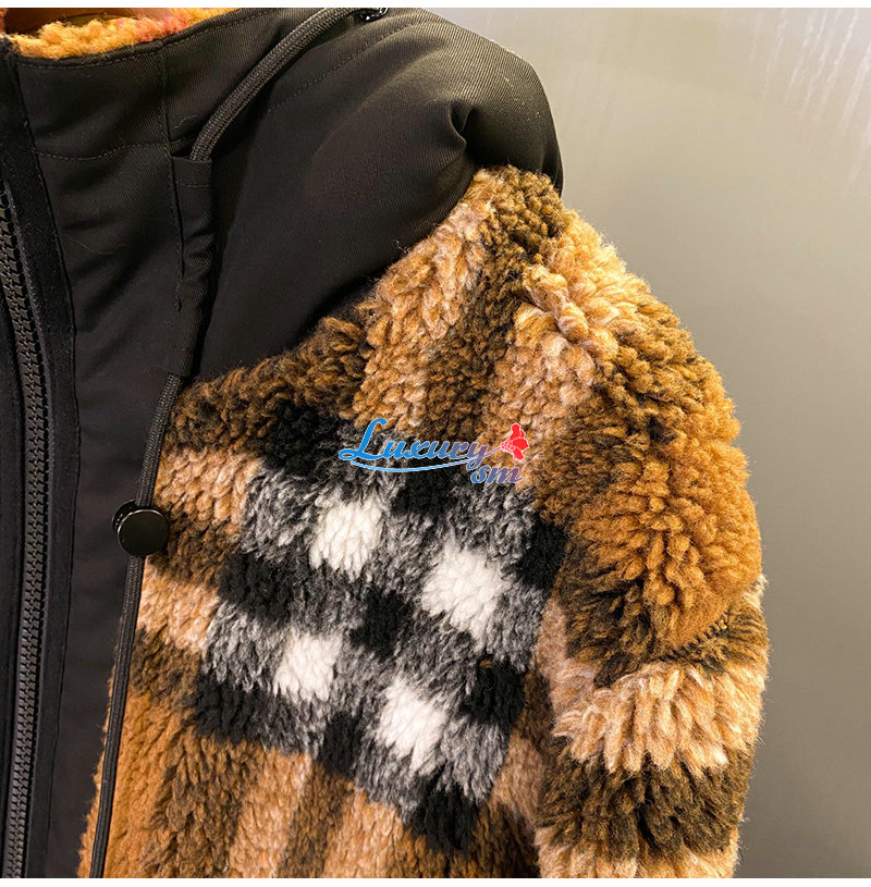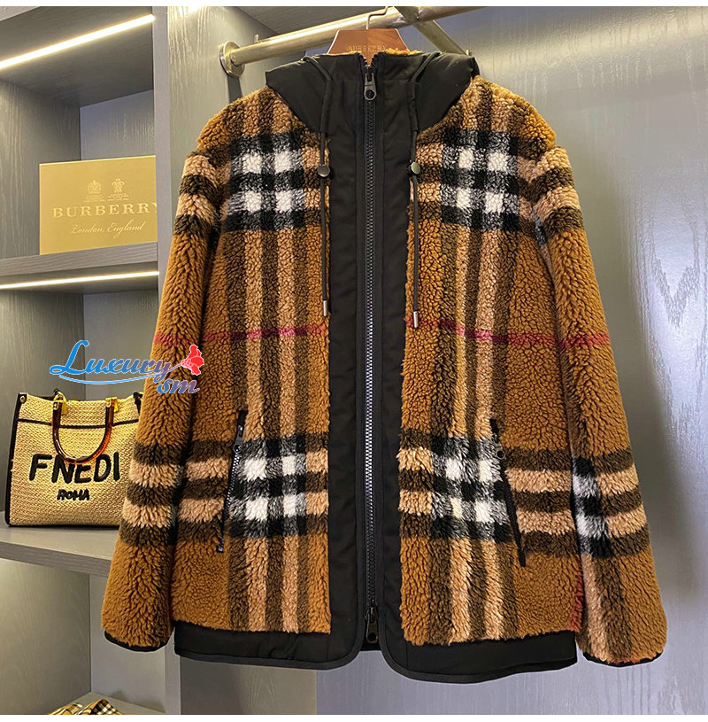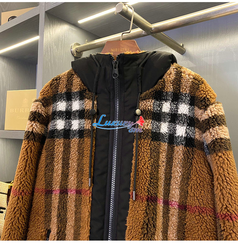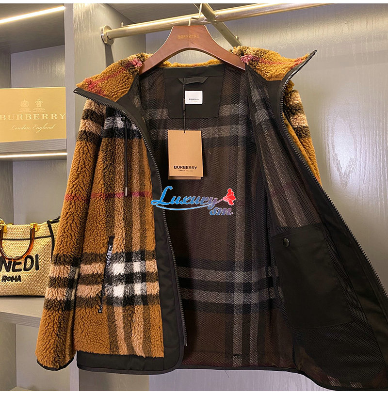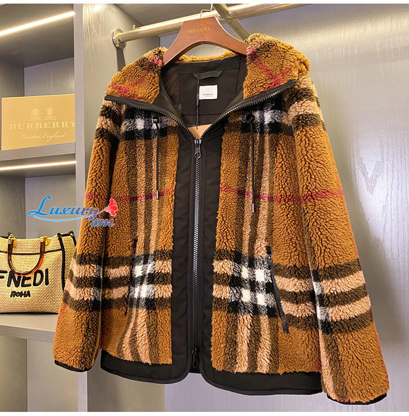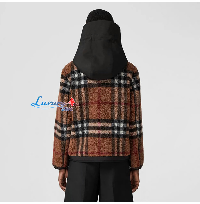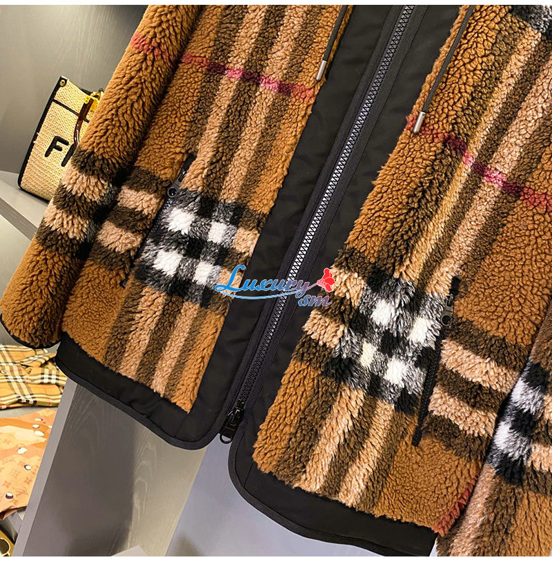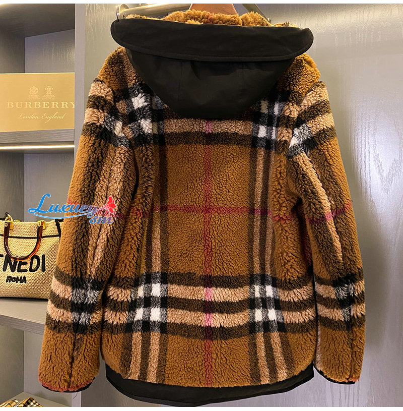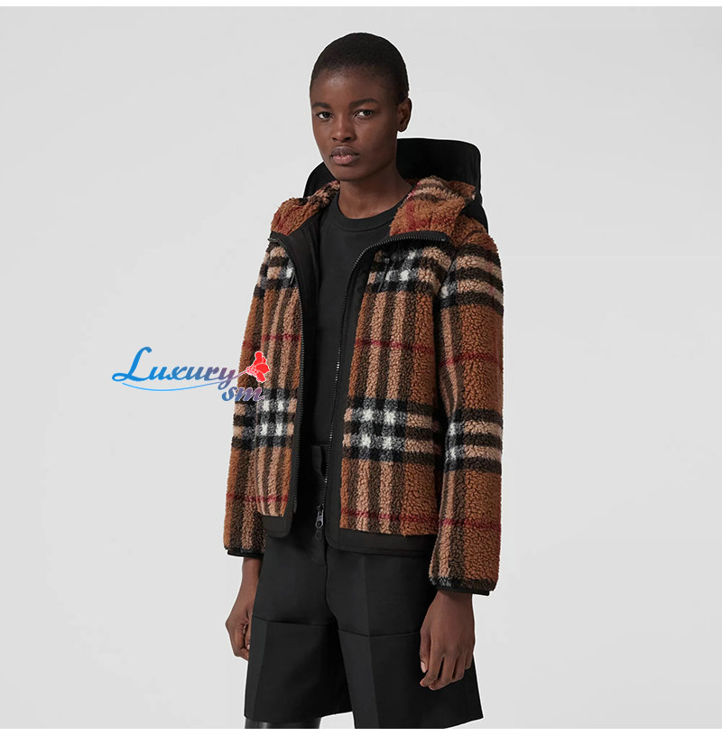 BURBERRY-111211 버버리 브라운 체크 무늬 시어링 후드 재킷 여성용