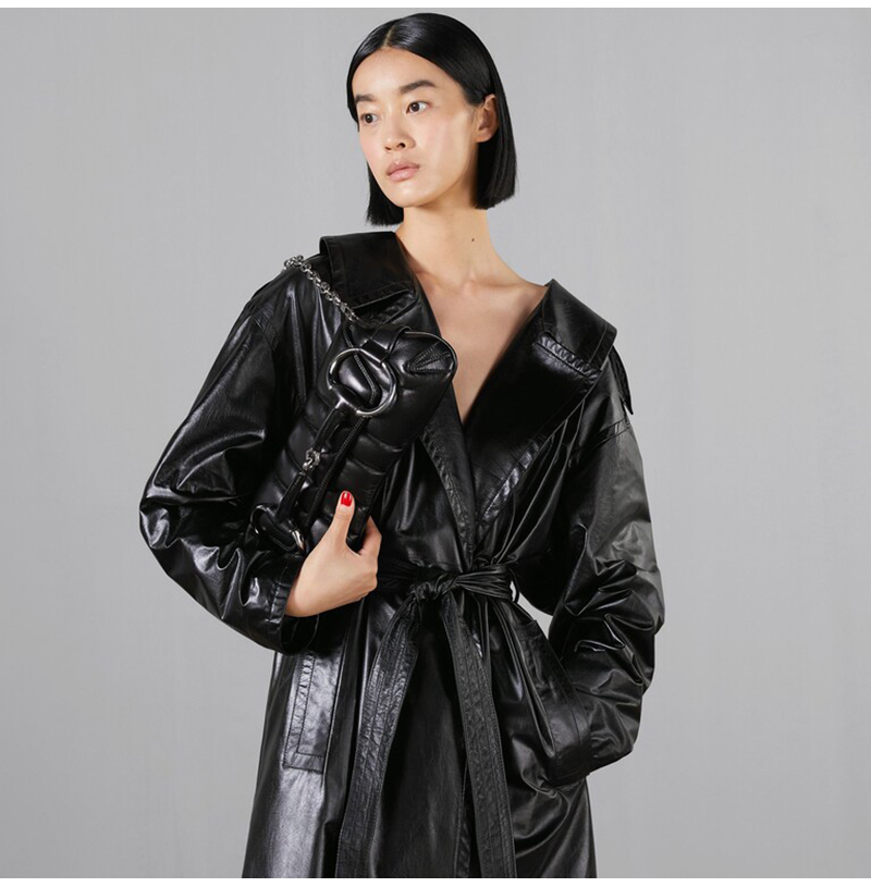 블랙 퀼티드 가죽 트리밍