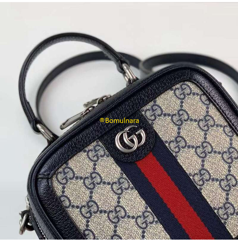 베이지&블루 GG 수프림 캔버스 / 브라운 가죽 트리밍