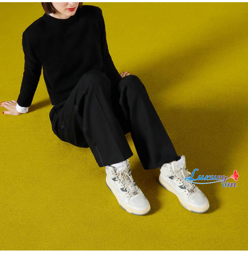 트레스드 디테일이 돋보이는 하이 탑 스니커즈.