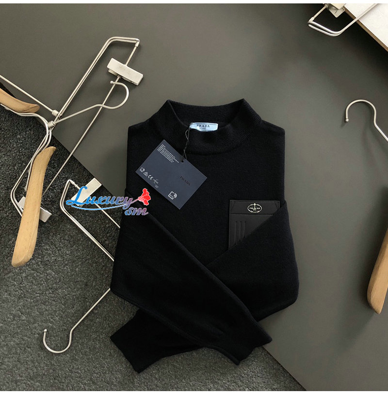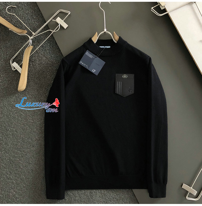 PRADA-121810 프라다 블랙 메탈 로고 장식 스웨터 남성용