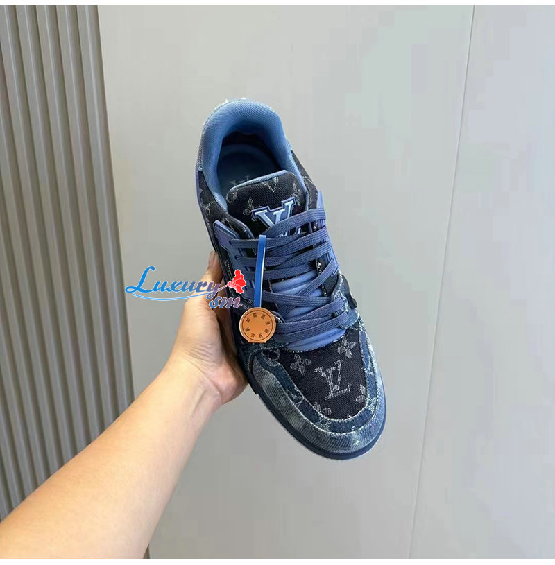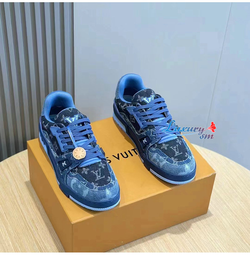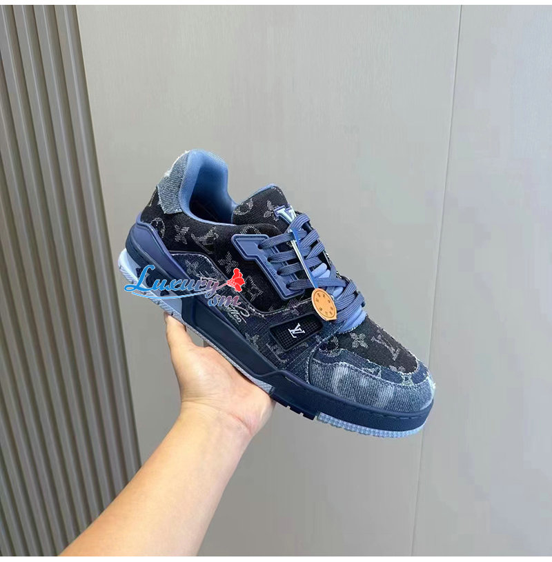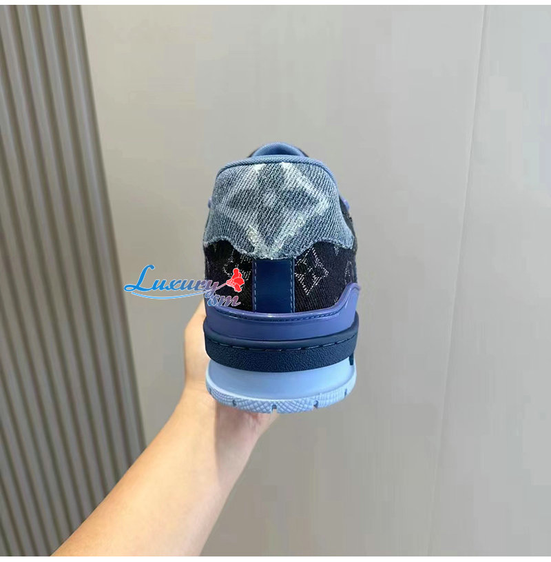 LOUIS VUITT**-1A9ZIE 루이비통 블루 모노그램 데님 LV 트레이너 스니커즈