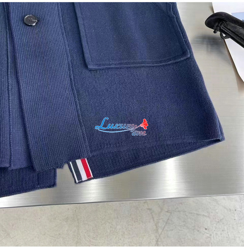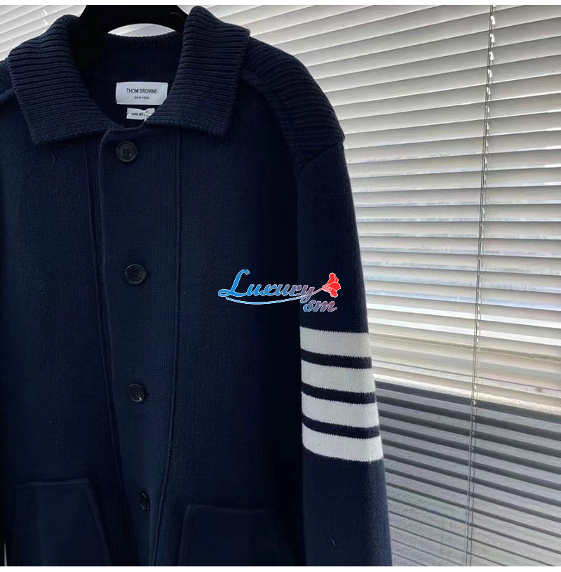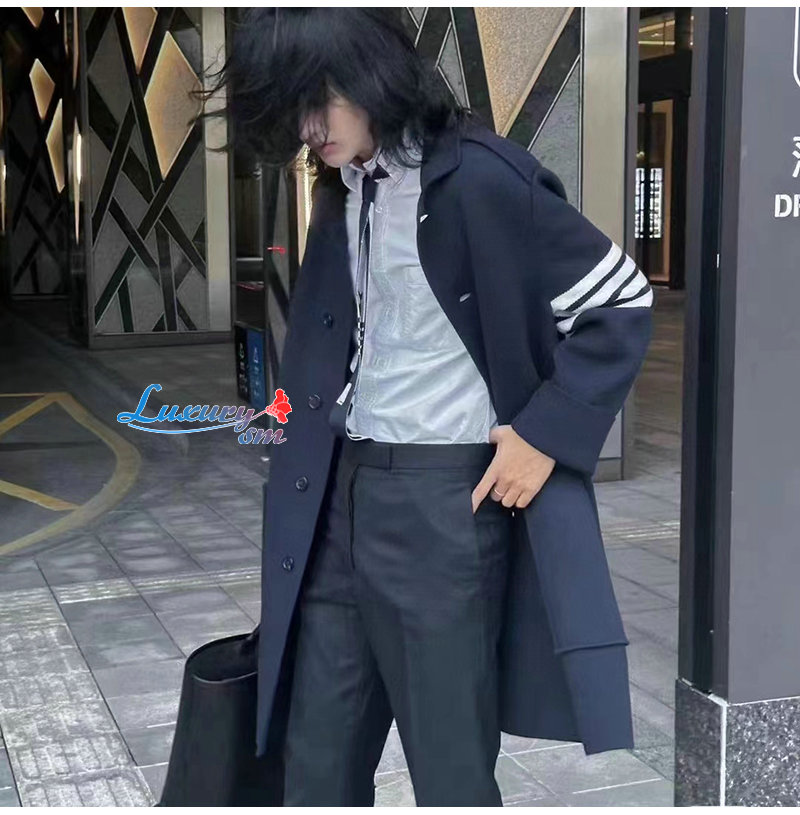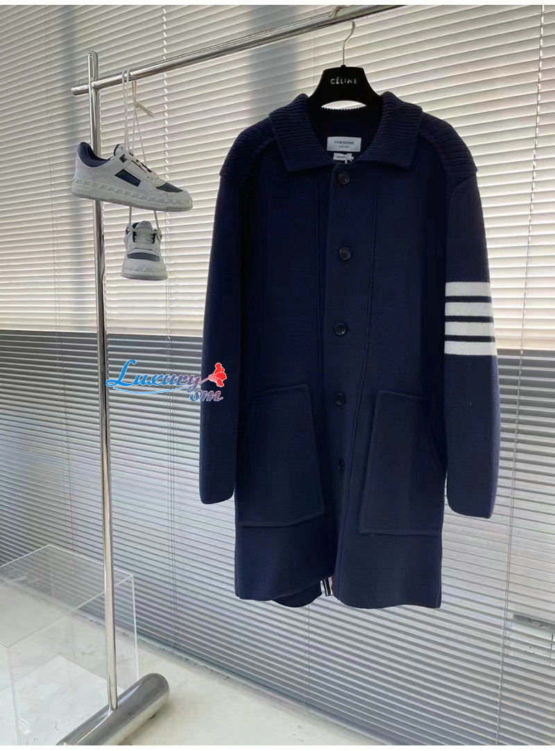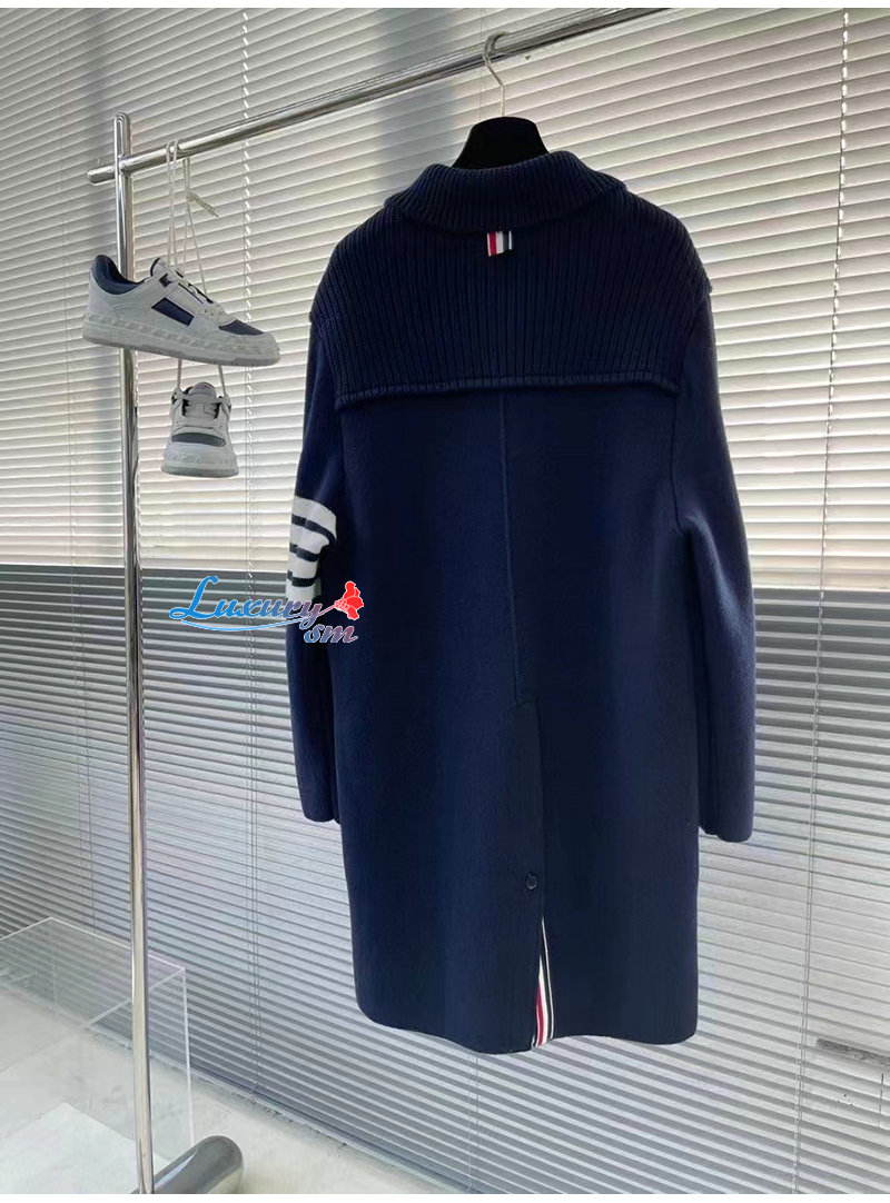 THOM BROWNE-12235 톰 브라운 네이비 스트라이프 장식 코트 남여공용