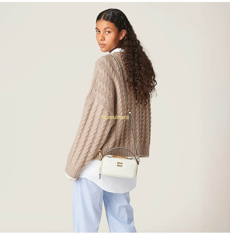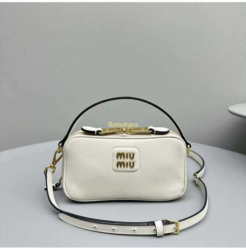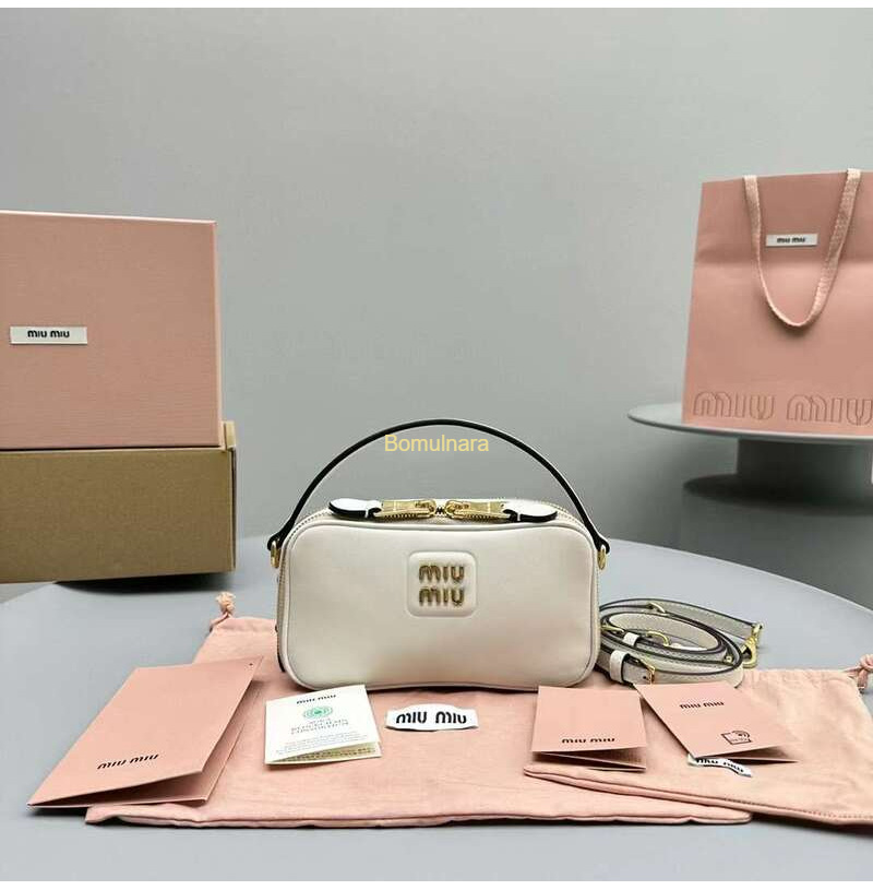 [스페셜오더]MIU MIU-5BH229 미우미우 초크화이트 레터링 로고 숄더백 18cm