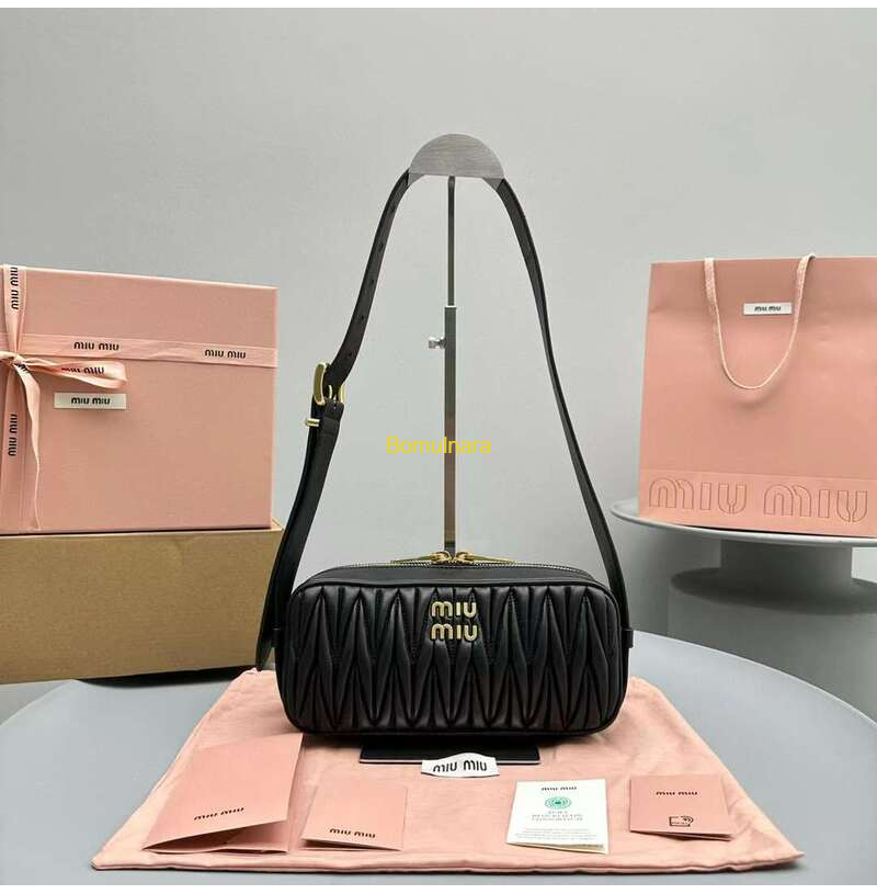 [스페셜오더]MIU MIU-5BC158 미우미우 블랙 마테라쎄 나파 가죽 숄더백 24cm