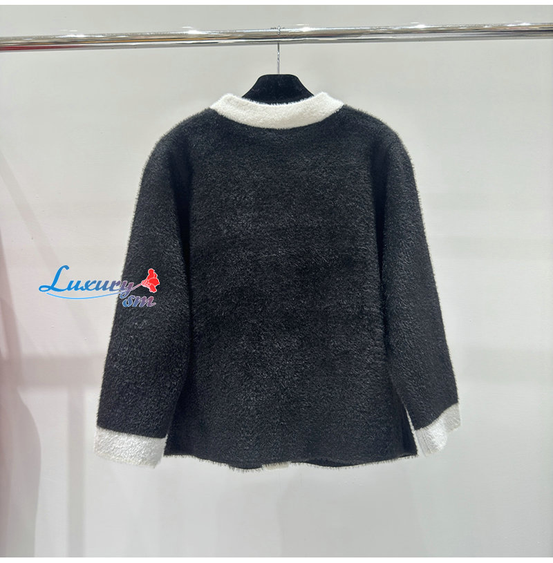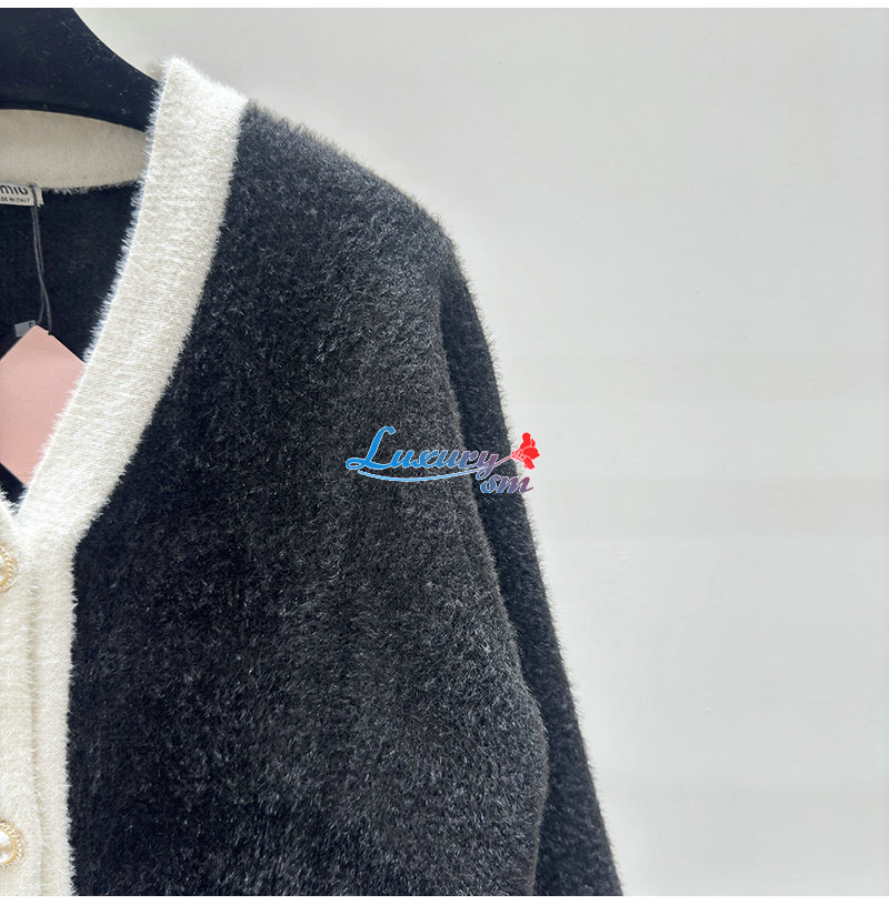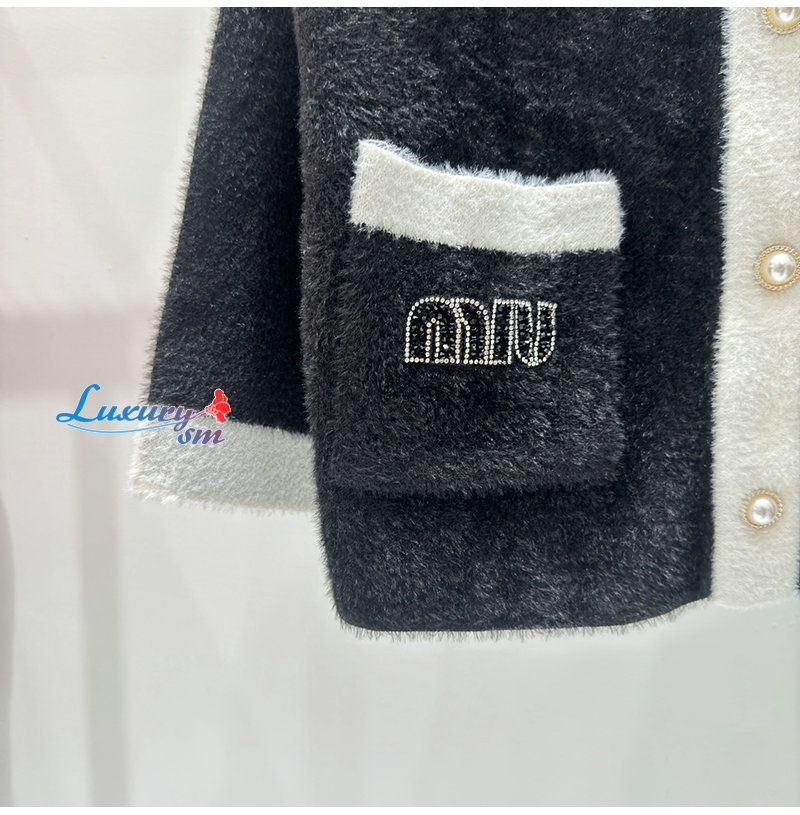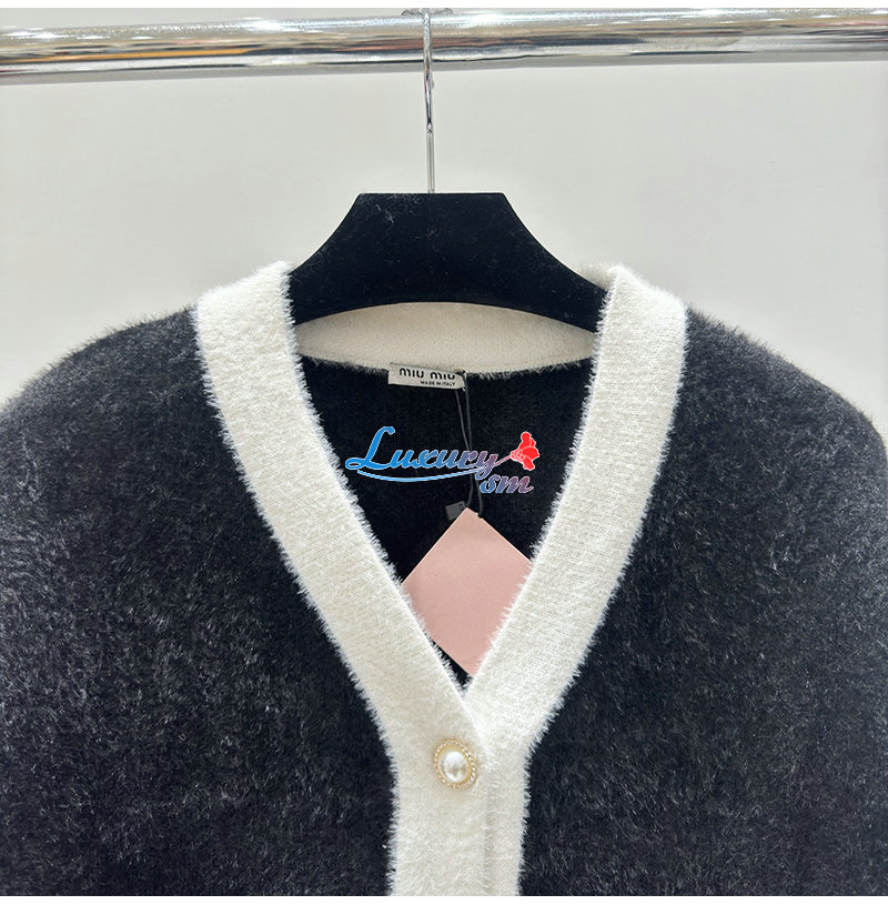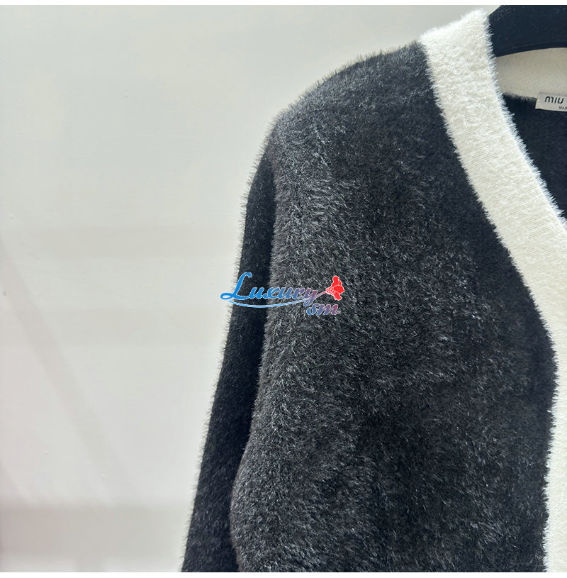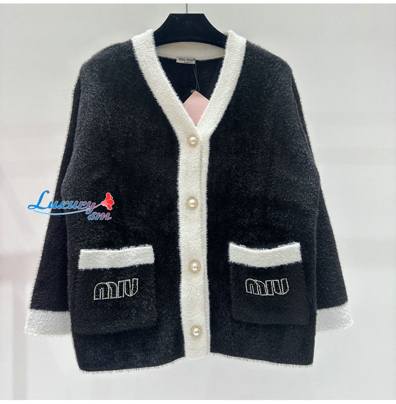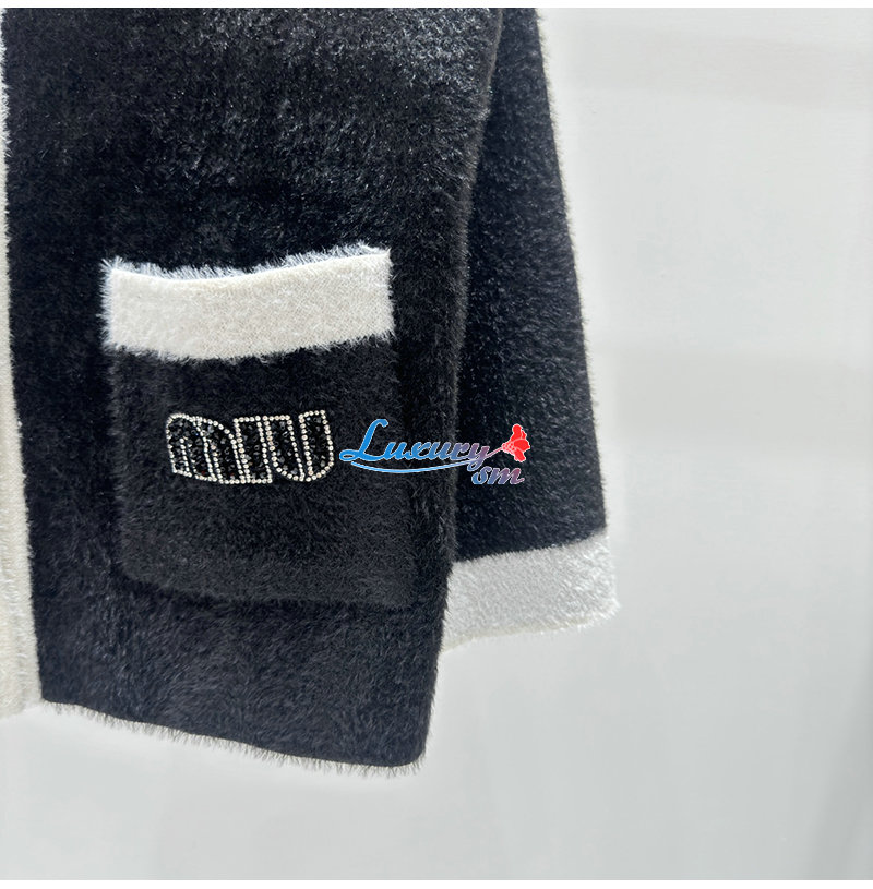 MIUMIU-01041 미우미우 블랙/화이트 시어링 가디건 여성용