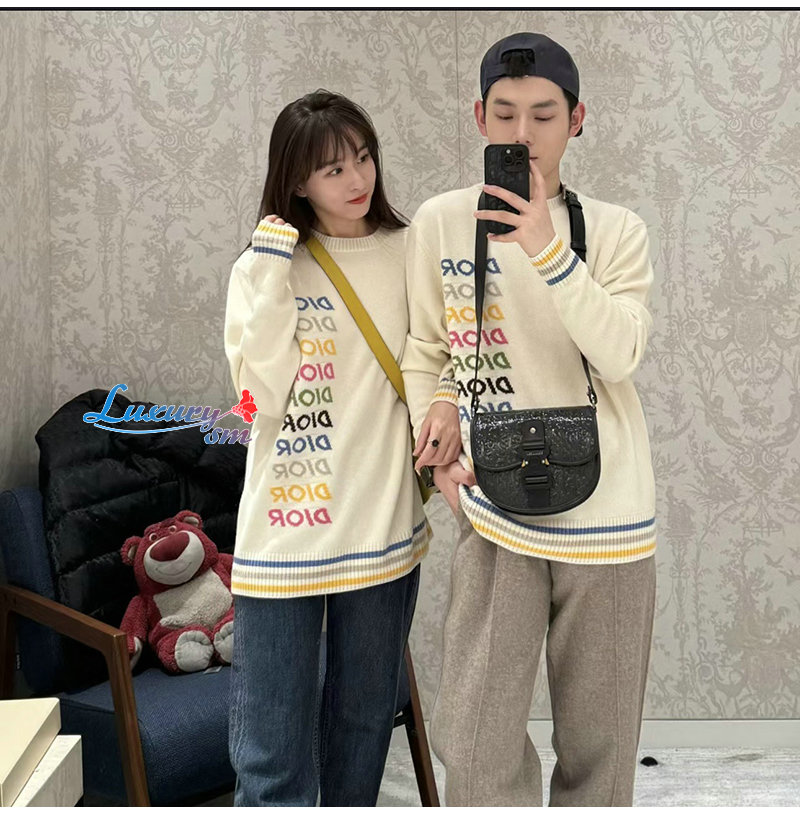 DIOR-01043 디올 아이보리 스트라이프 장식 스웨터 남여공용