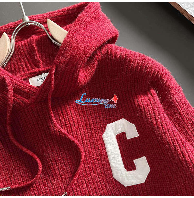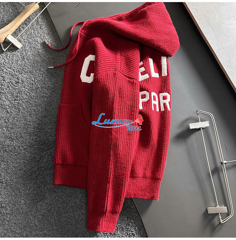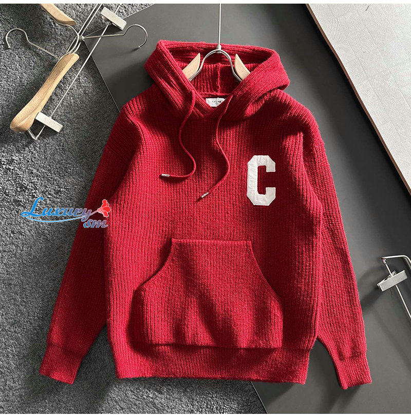 CELINE-01055 셀린느 레드 니트 코튼 후드
