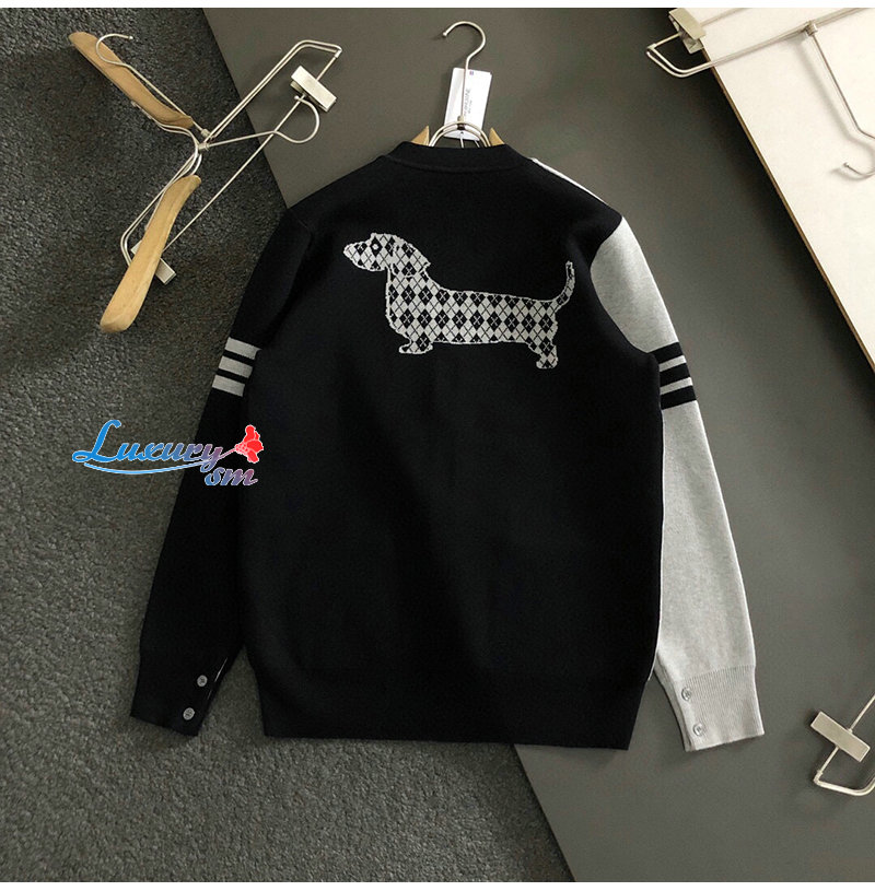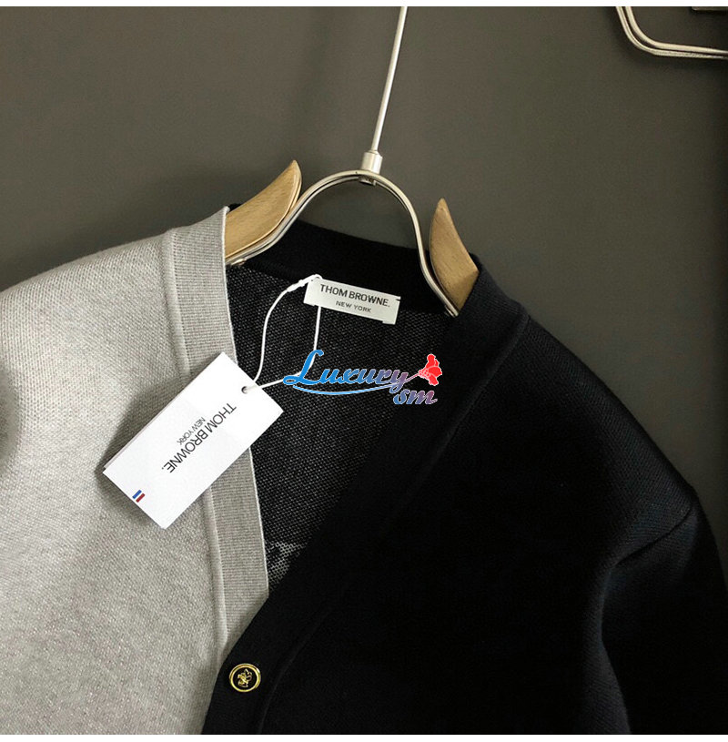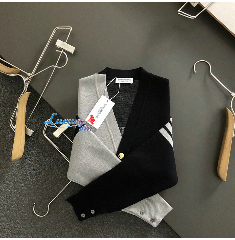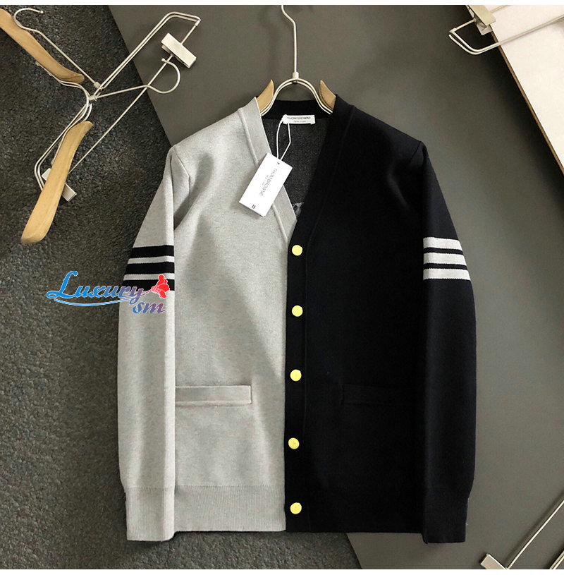 THOM BROWNE-01058 톰 브라운 그레이/블랙 스트라이프 장식 가디건 남성용