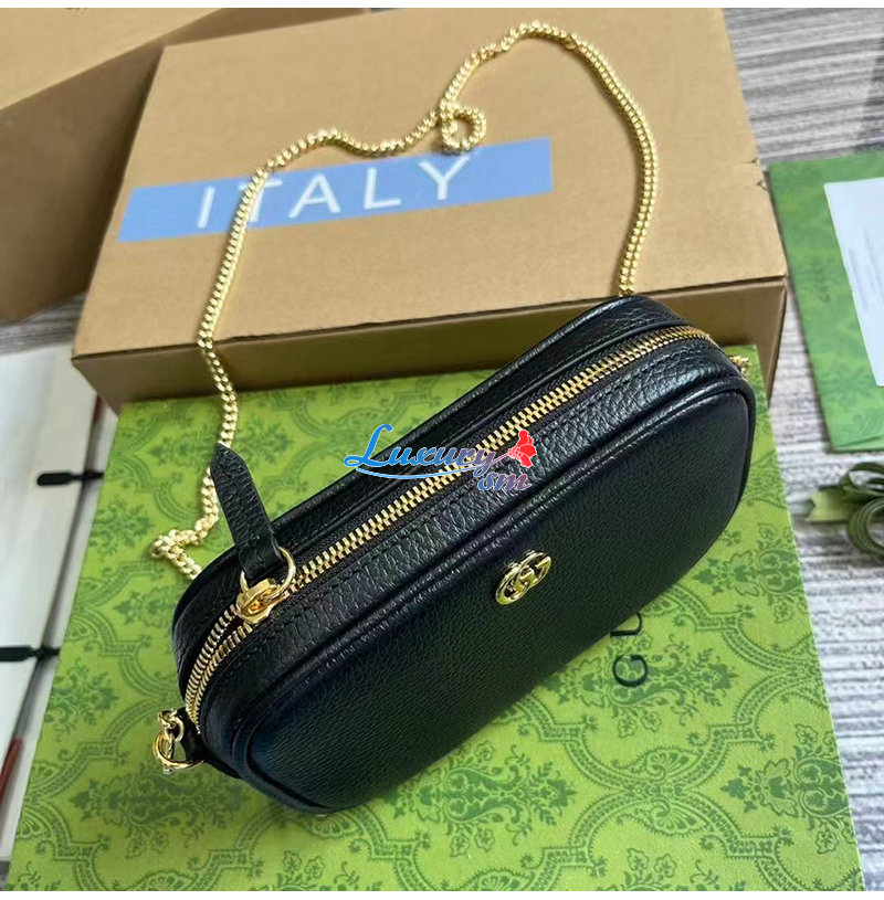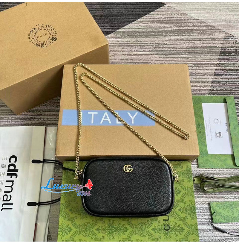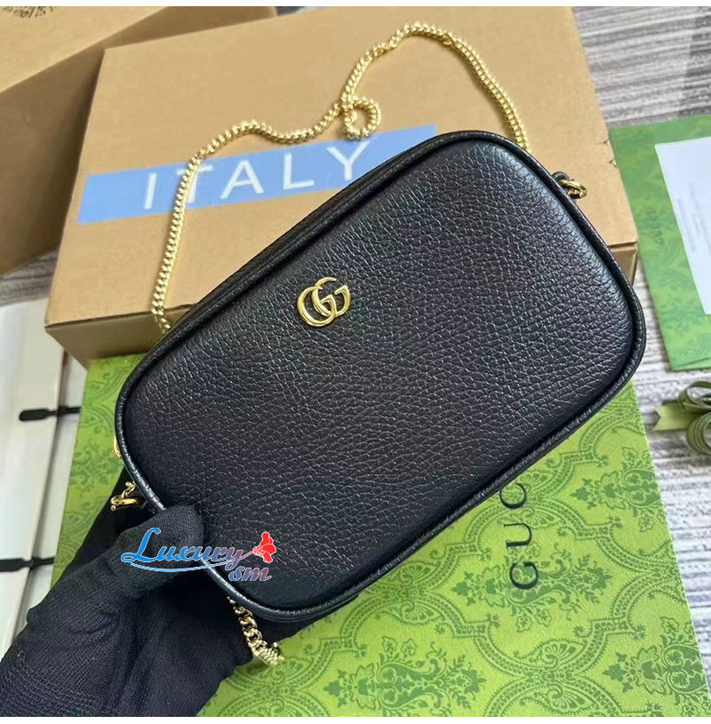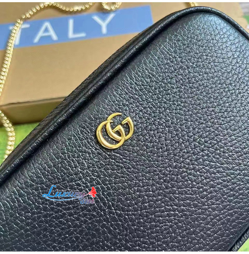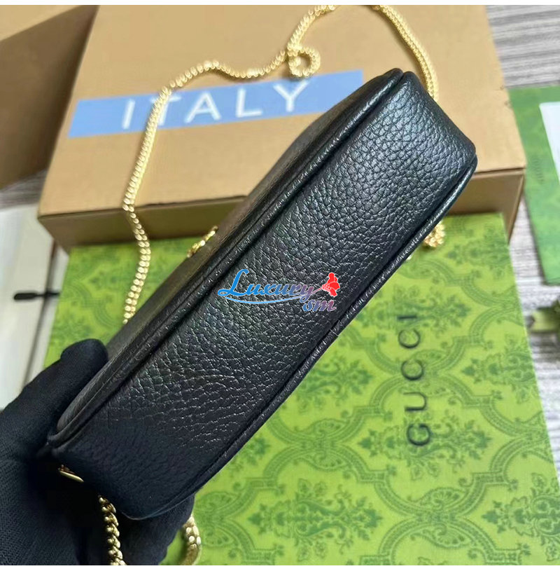 [스페셜오더]GUCCI-772759 1000 구찌 블랙 가죽 GG 마몽 미니 숄더백