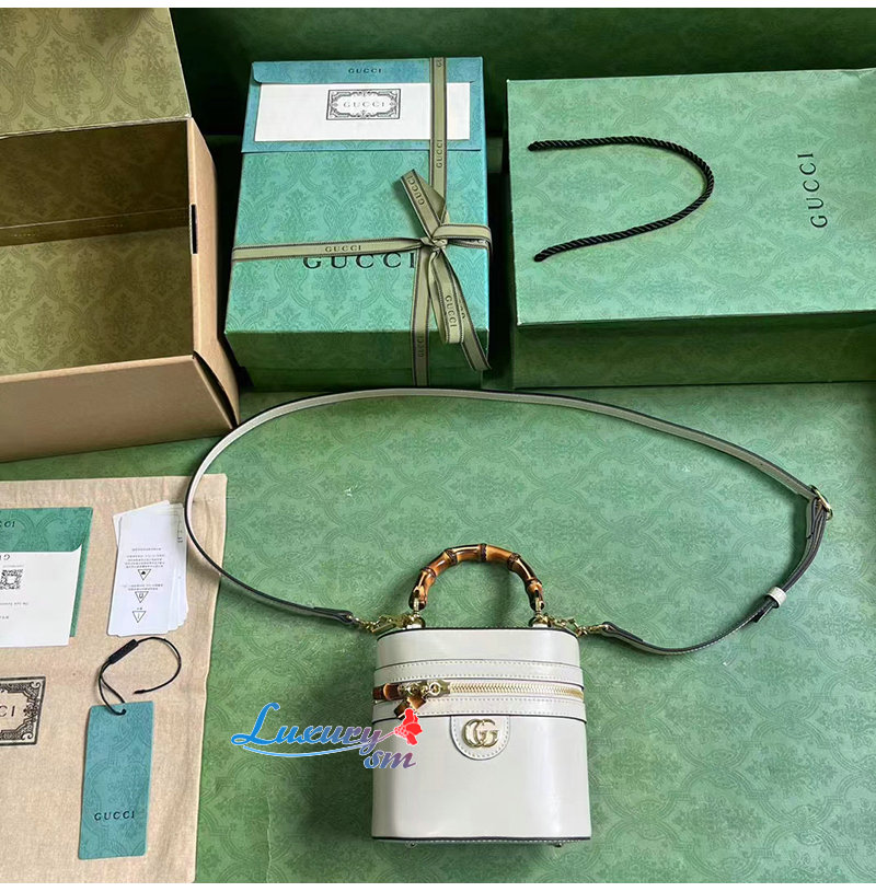 [스페셜오더]GUCCI-760200 9022 구찌 화이트 가죽 미니 뱀부 숄더백
